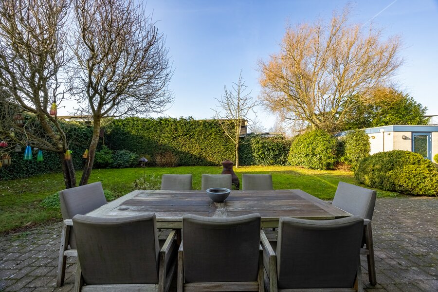 Ruim en groen perceel van ca. 615 m² met zonnige tuin rondom voorzien van een sproei-installatie en met een achtertuin op het zuidwesten. U kunt hier heerlijk van de middag-/avondzon genieten op het terras bij de achtergevel. De bomen rondom bieden een uitstekende natuurlijke privacy. Eigen oprit met ruimte voor meerdere auto’s. Tevens een ruime externe berging van ca. 18 m².