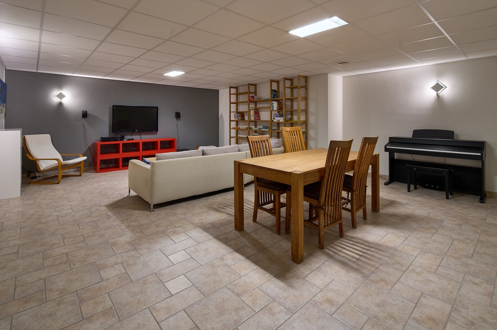 • Het souterrain van ca 150 m² die nu gebruikt wordt voor ontspanning;