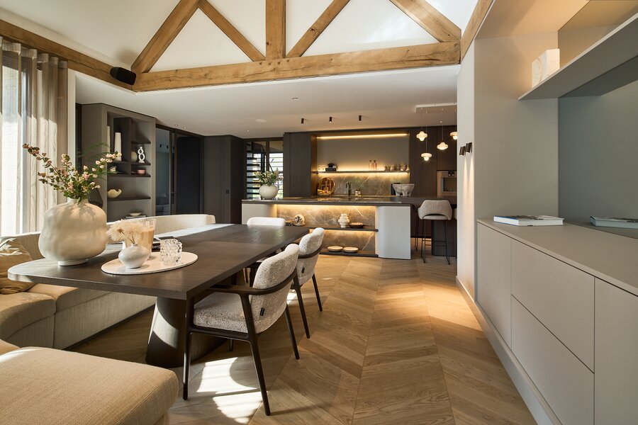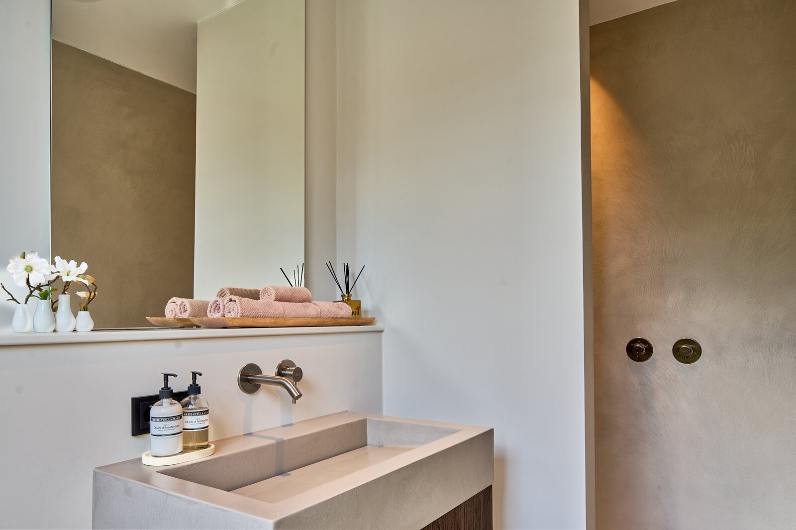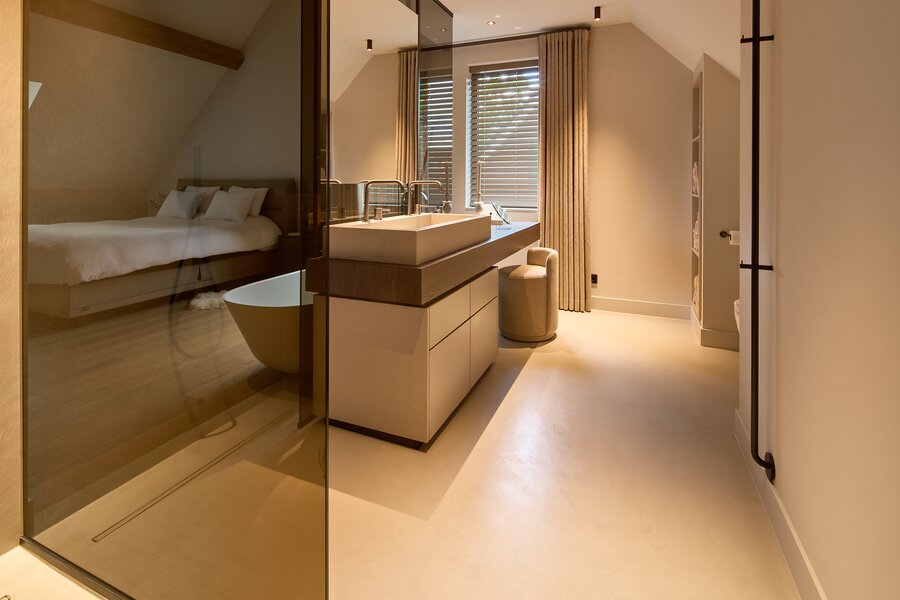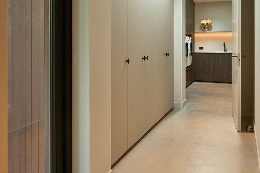 De villa beschikt over een indrukwekkende leefkeuken met marmeren kookeiland en topapparatuur (o.a. Gaggenau, Bora en Quooker), een elegante living, meerdere luxe badkamers en een royale master suite met spa-uitstraling. Hoogwaardige materialen zoals Microtopping, eiken Hongaarse puntvloeren en maatwerk kasten zijn door de gehele woning doorgevoerd.