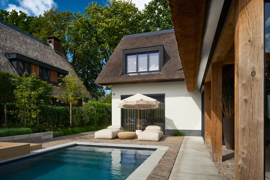 In de karaktervolle Pastoor Bolsiusstraat staat deze exclusieve, rietgedekte designvilla van uitzonderlijk niveau. Volledig op maat ontworpen en gerealiseerd door interieurarchitect Zout Ontwerphuis, met oog voor detail, comfort en hoogwaardige afwerking. Van maatwerk interieur tot geavanceerde domotica: alles ademt luxe.