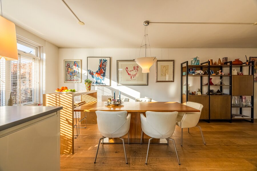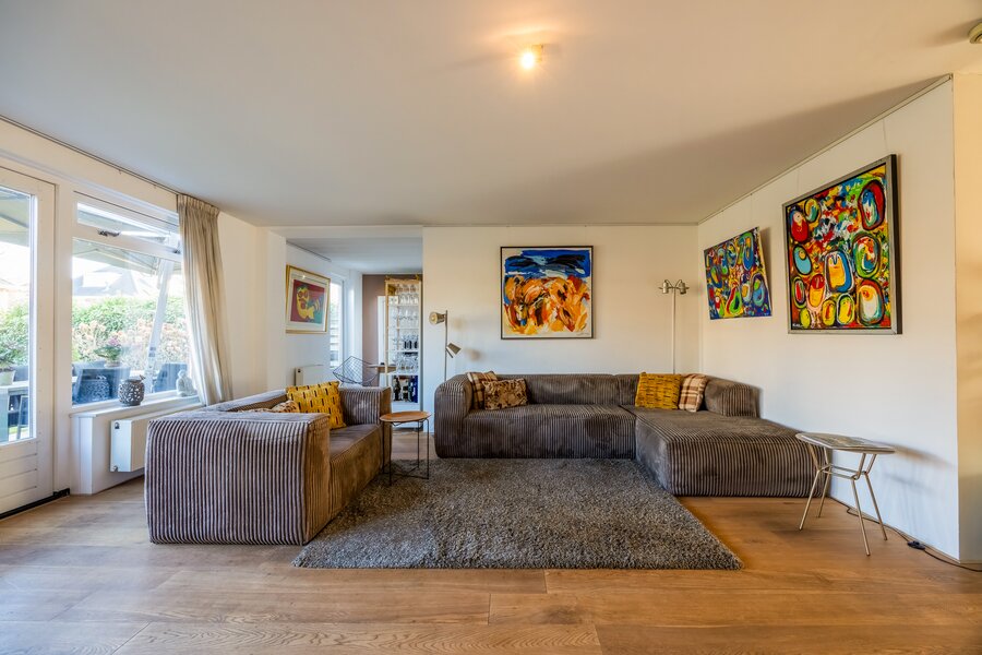 Deze riante helft van een dubbele villa combineert ruimte, comfort en rust met iets wat in Het Gooi zeldzaam is: wonen direct aan vaarwater met een eigen steiger. Hier begint het weekend niet op vrijdagmiddag, maar zodra u de achterdeur opent.