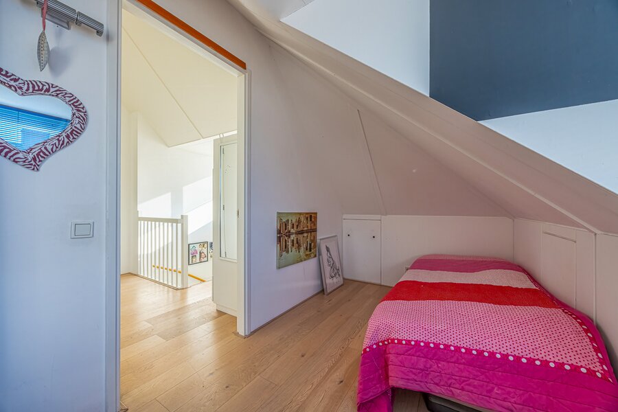 Overloop met dakkapellen aan de voor- en zijkant, waardoor deze verdieping zeer licht en ruim is. Hier bevinden zich de vierde en vijfde slaapkamer, ideaal als kinder-, werk- of logeerkamer.