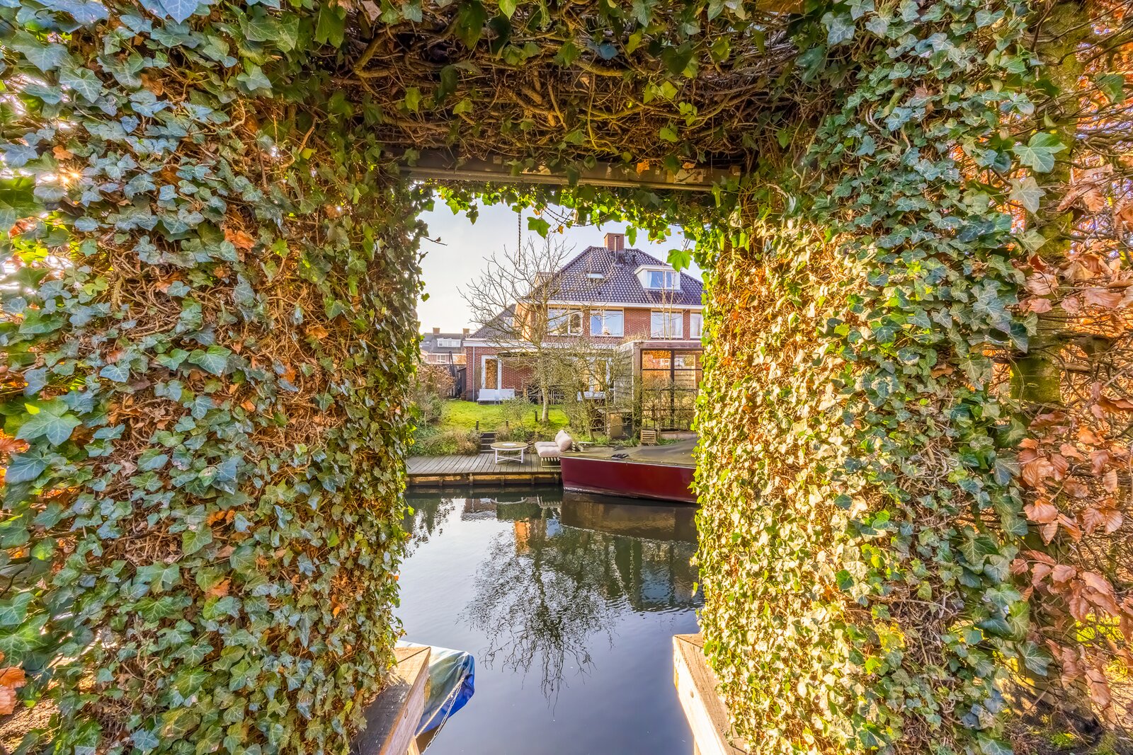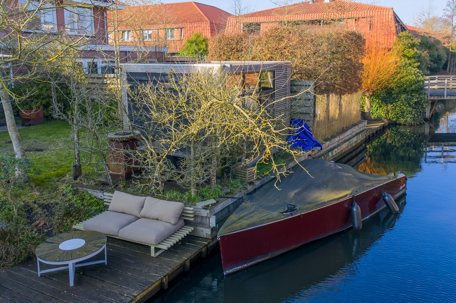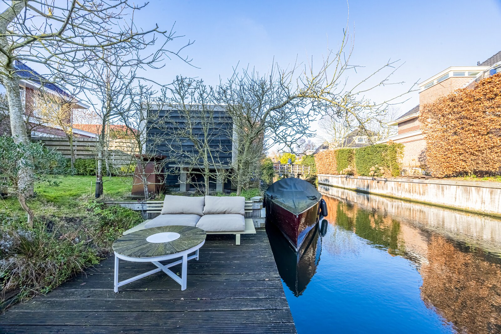 - Tuin aan vaarwater met ligplaats in eigen water