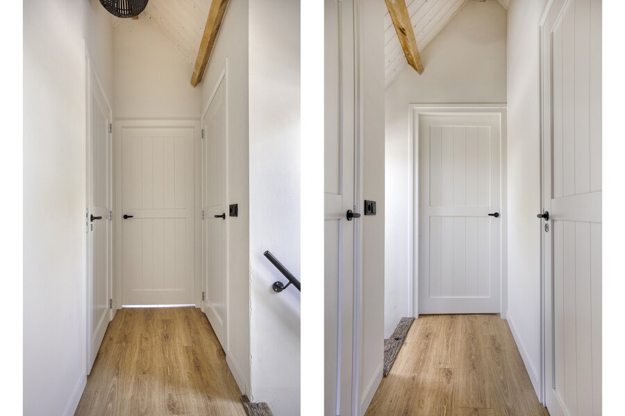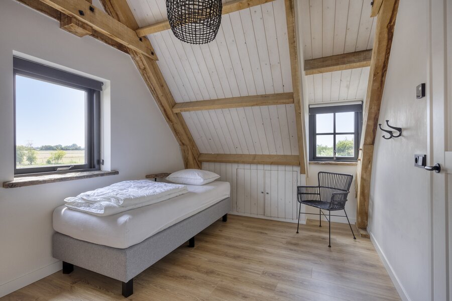 Eerste verdieping: ruime overloop (dankzij meerdere dakkapellen) met toegang tot maar liefst zes slaapkamers, allen extra ruim door dakkapellen of dakramen. Verder vindt u hier een separaat toilet.