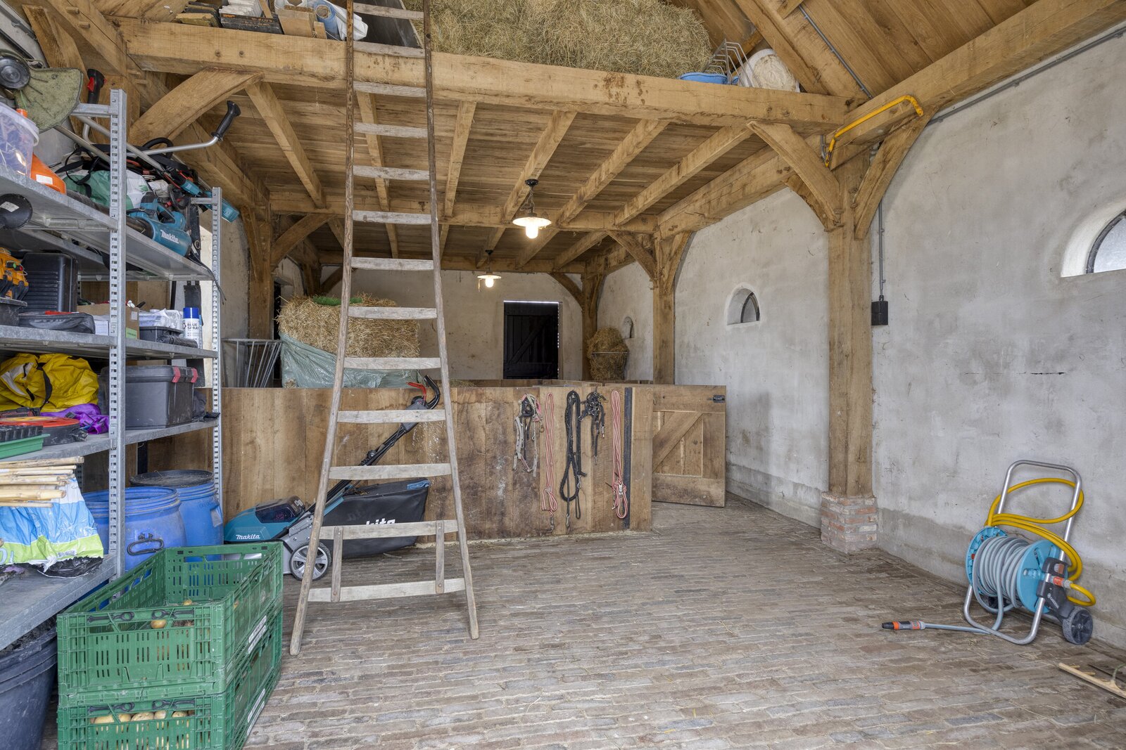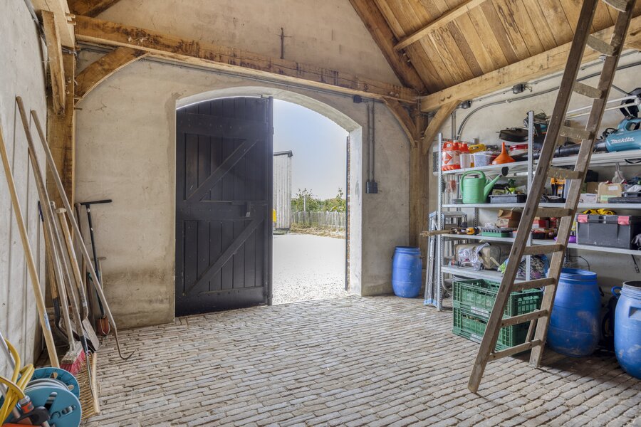 Achter op het perceel bevindt zich een ruime schuur, deels met betonnen vloer en hooizolder. Deze ruimte is uitermate geschikt voor; het parkeren van auto's, het stallen van dieren of andere multifunctionele doeleinden. Achter de schuur is recent een nieuw kippenhok gebouwd.