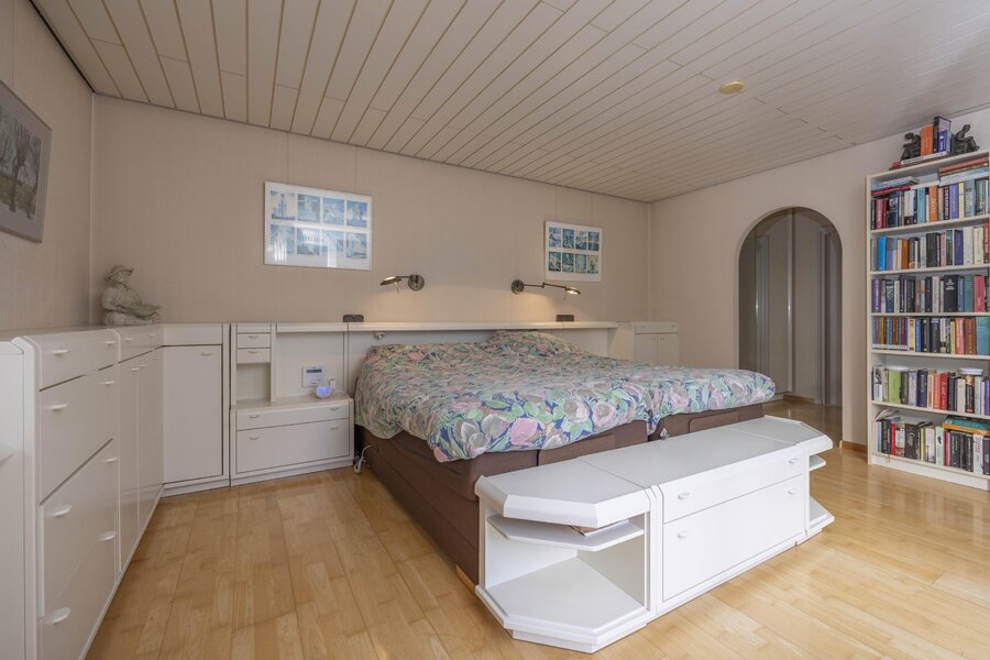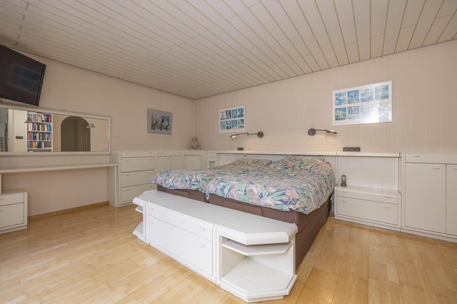 De twee royale slaapkamers zijn gelegen aan de linker- en rechterzijde, met aan de linkerzijde een schuifpui naar het prettige loggiabalkon gelegen op het zonnige zuiden.
