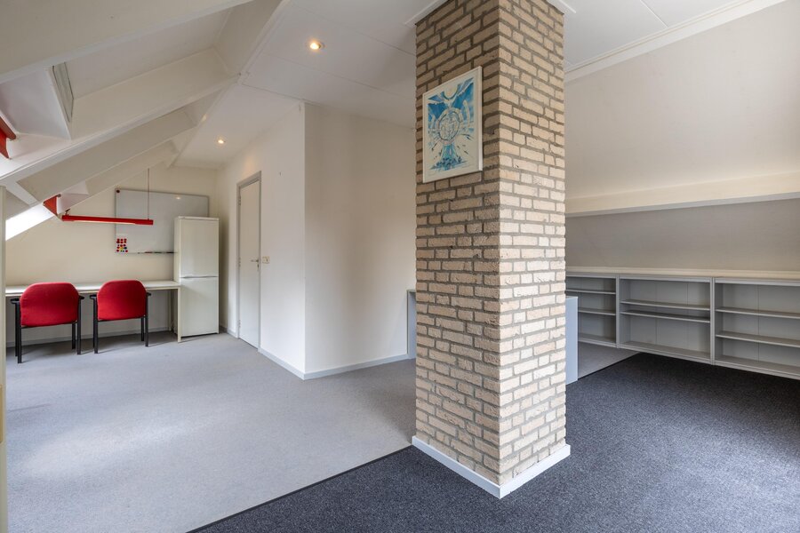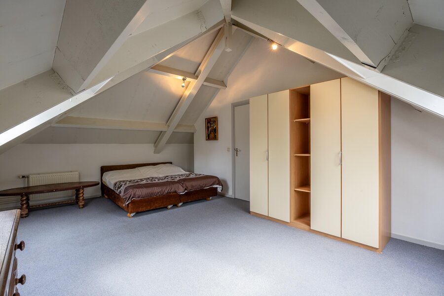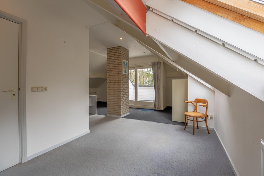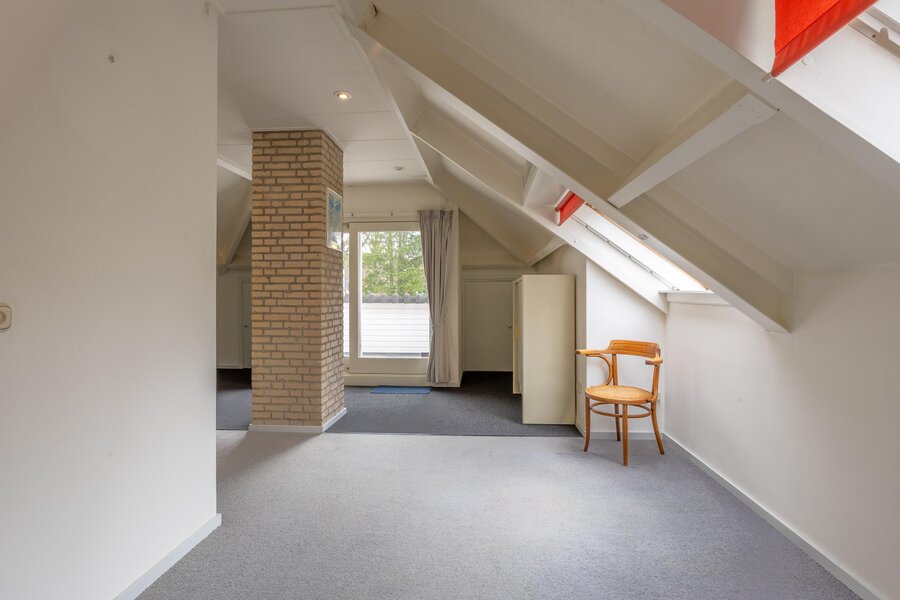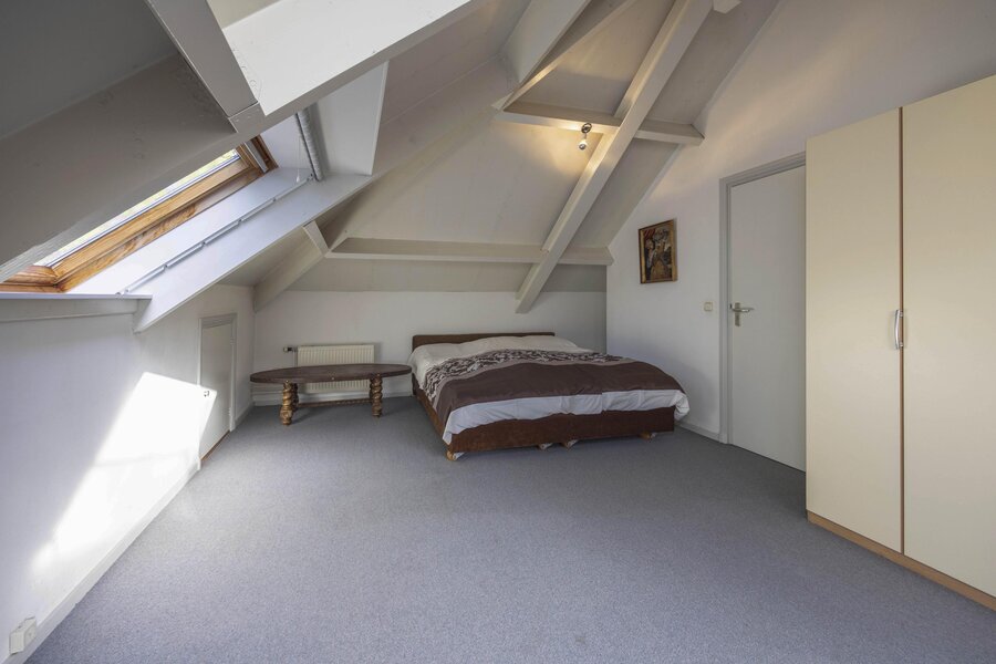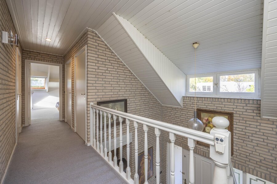 De overloop biedt toegang tot alle vertrekken van de eerste verdieping, bestaande uit twee slaapkamers, badkamer, technische ruimte met cv-opstelling en een separate toiletruimte.