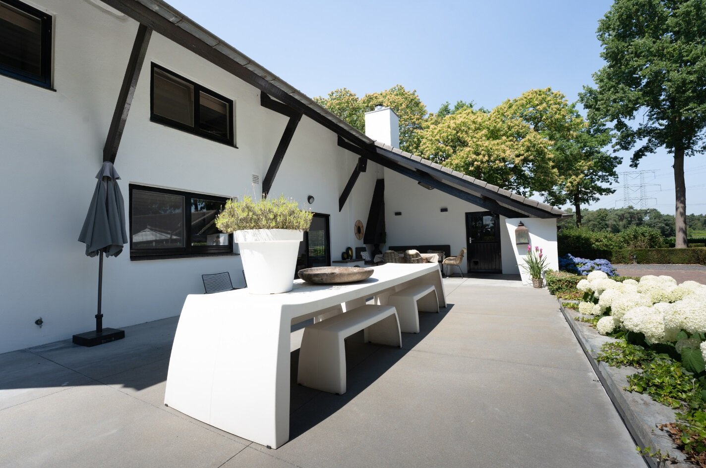De bijgebouwen en de royale buitenruimte maken deze locatie bijzonder geschikt voor wie wonen en werken wil combineren of simpelweg verlangt naar ruimte om zich heen.