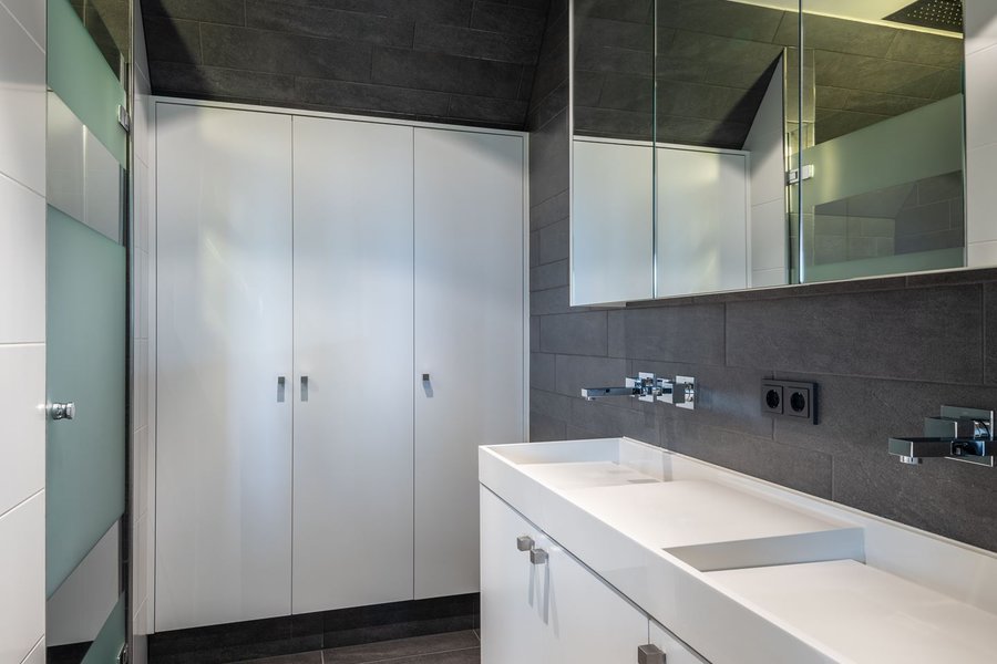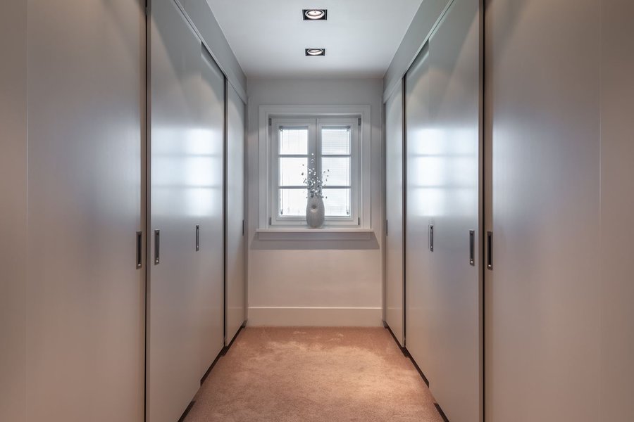 Ruime overloop met vide, drie slaapkamers, een badkamer met inloopdouche, dubbele wastafel en separaat toilet. Via een portaal met inloopkasten is de master bedroom bereikbaar met eigen loggia, vaste kasten, luxe badkamer met whirlpool, inloopdouche en walk-in closet.