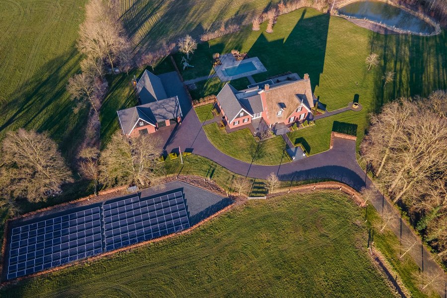 Het landhuis is in 2010 gebouwd met hoogwaardige, duurzame materialen en heeft een woonoppervlakte van maar liefst 364 m². Ook de vrijstaande schuur (262 m²) is van hetzelfde niveau en compleet in stijl opgetrokken. Het geheel ligt op een perceel van ruim 15.000 m² en biedt daarmee volledige privacy, rust en een fantastisch uitzicht over de achterliggende natuur.