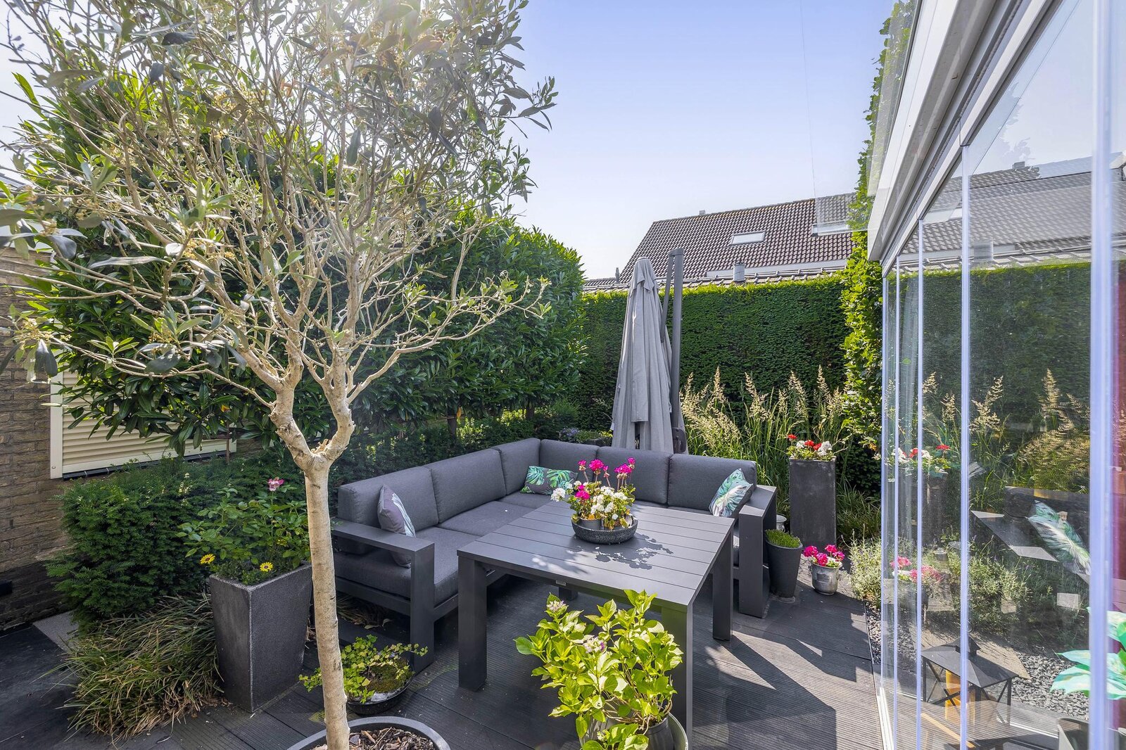 Buiten is het minstens zo genieten. De zonnige tuin rondom de woning biedt volop privacy, met meerdere terrassen, een serre, een diepe oprit van 11 meter, een garage van 38 m², extra berging én een kleine overkapping.