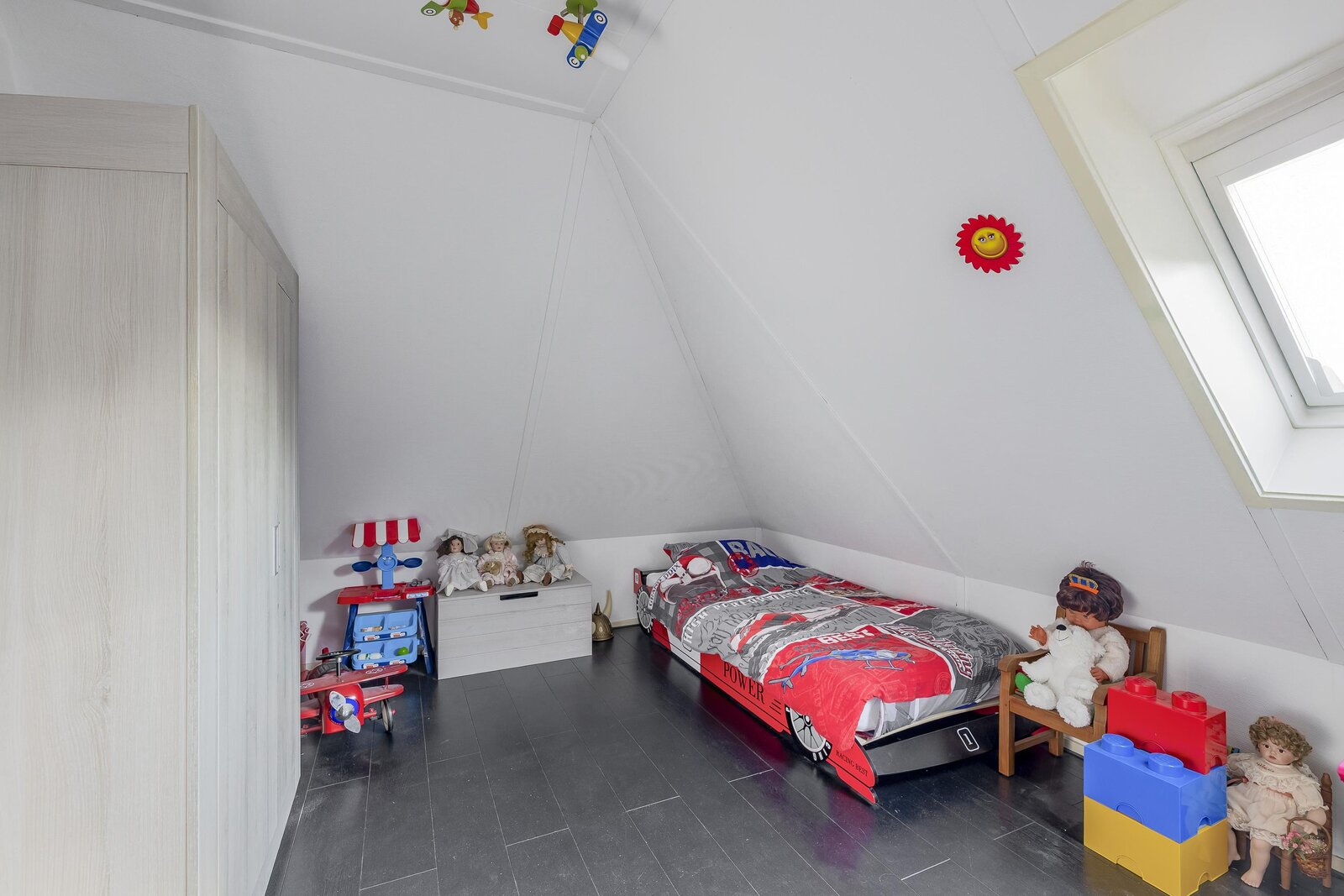Op de eerste verdieping bevinden zich vier sfeervolle slaapkamers, elk met een eigen karakter en aangename lichtinval. De masterbedroom aan de achterzijde is bijzonder royaal en krijgt extra ruimtelijkheid door een brede dakkapel. Deze kamer is slim en stijlvol ingericht met een walk-in-closet, perfect voor haar garderobe, én aan de andere zijde een ruime schuifwandkast – ideaal als extra kastruimte voor hem. Hier komen comfort en elegantie moeiteloos samen. De overige drie slaapkamers zijn uitgerust met kunststof Velux dakramen, wat zorgt voor veel natuurlijk licht. Eén van de kamers beschikt bovendien over een handige vaste kastenwand.