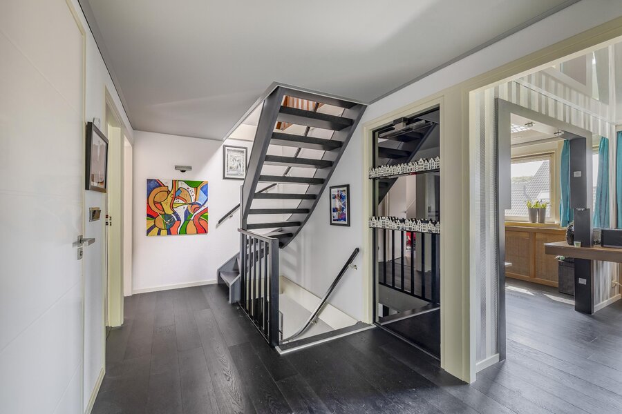Op de eerste verdieping vind je vier ruime slaapkamers en twee stijlvolle badkamers, waaronder een master suite met walk-in closet, dakkapel en extra kastruimte. En als kers op de taart: op zolder wacht een fijne wellness ruimte met infraroodsauna – jouw eigen oase van rust.