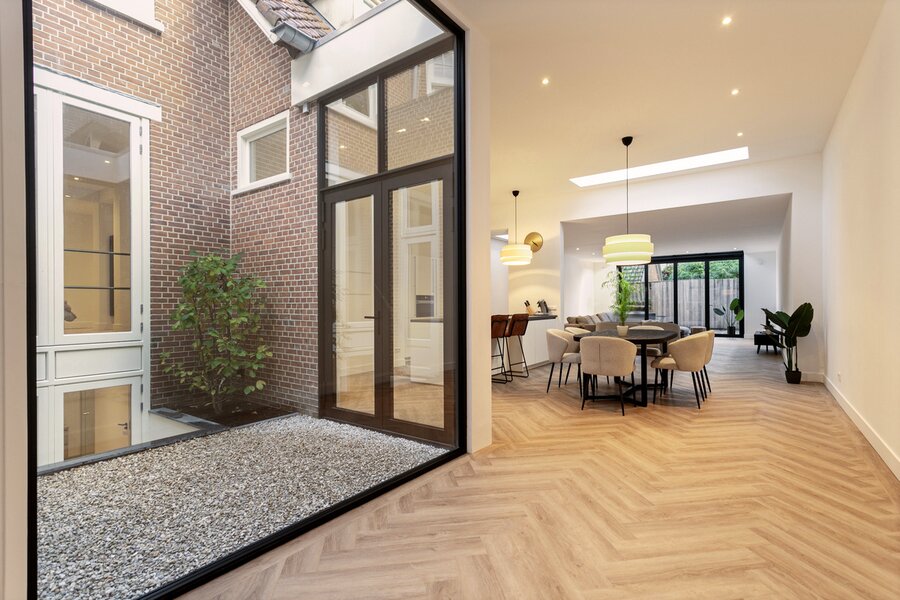 Wonen hier betekent: de gezelligheid van het dorp Laren – met terrassen, winkels en delicatessenzaken letterlijk om de hoek – combineren met een woonbeleving die je eerder verwacht in een moderne loft of stadsappartement. Verborgen achter glas, maar zodra de deur opengaat, is het pure verrassing.