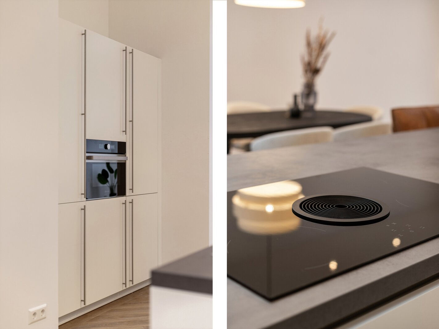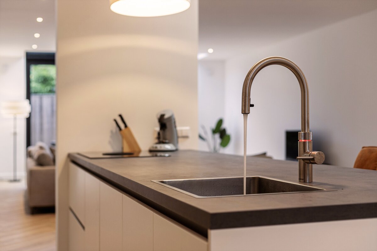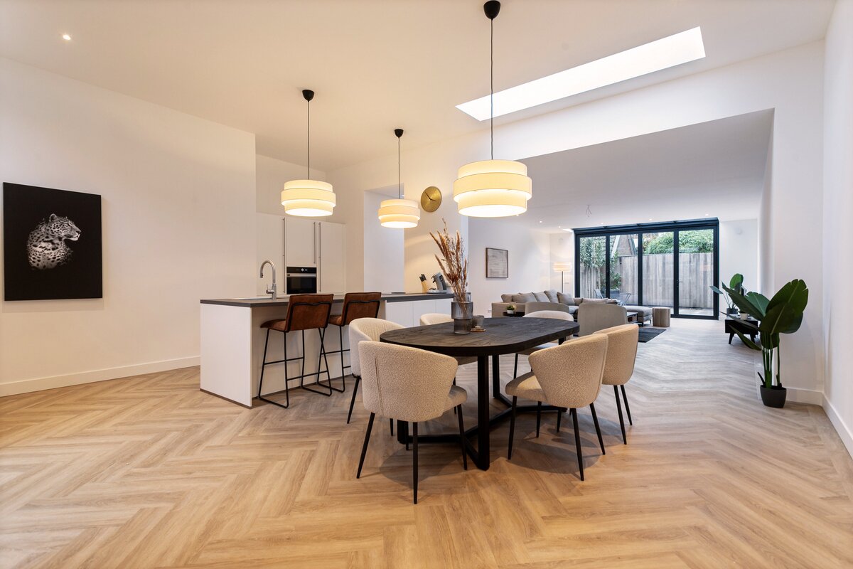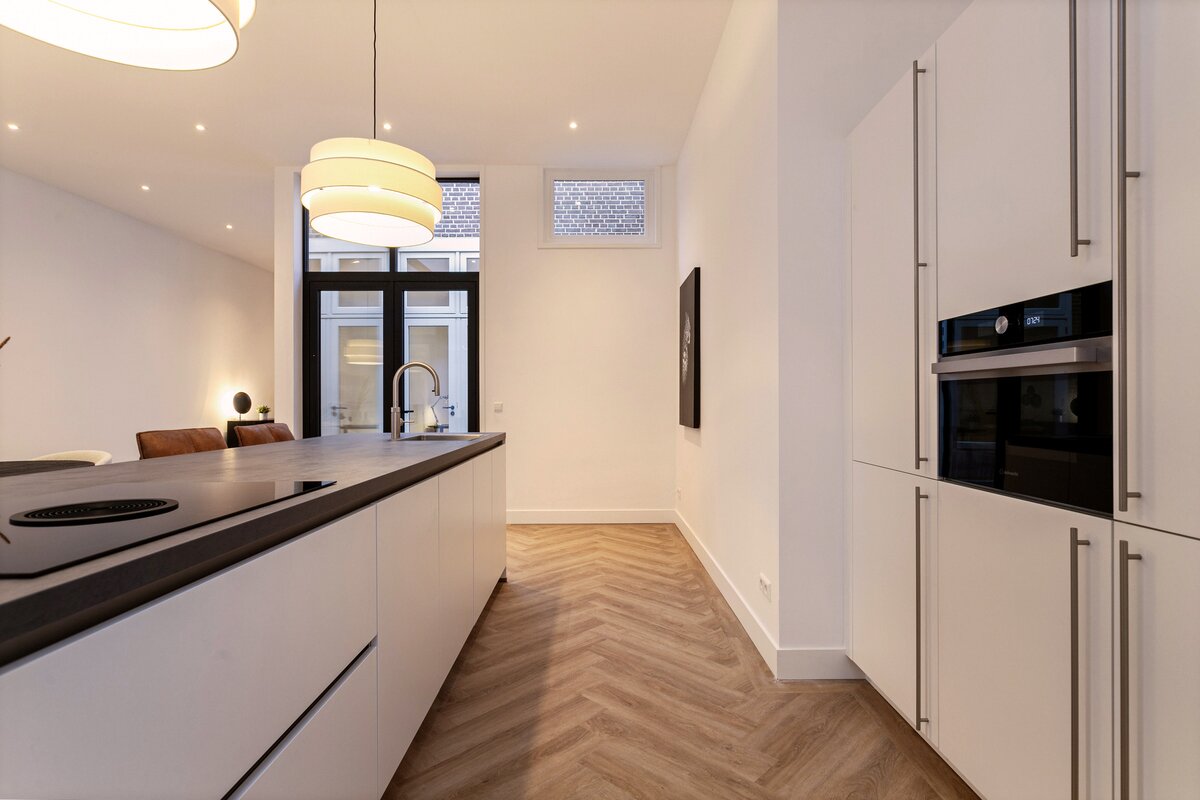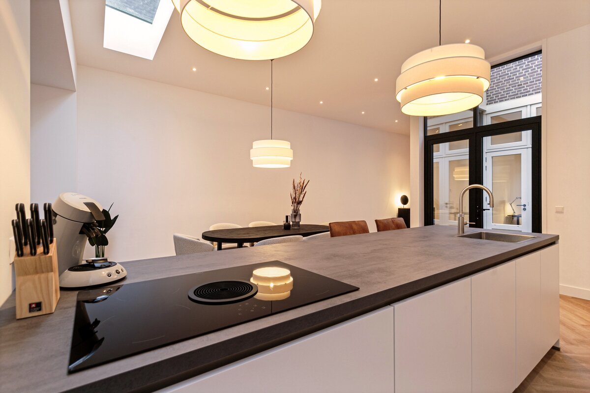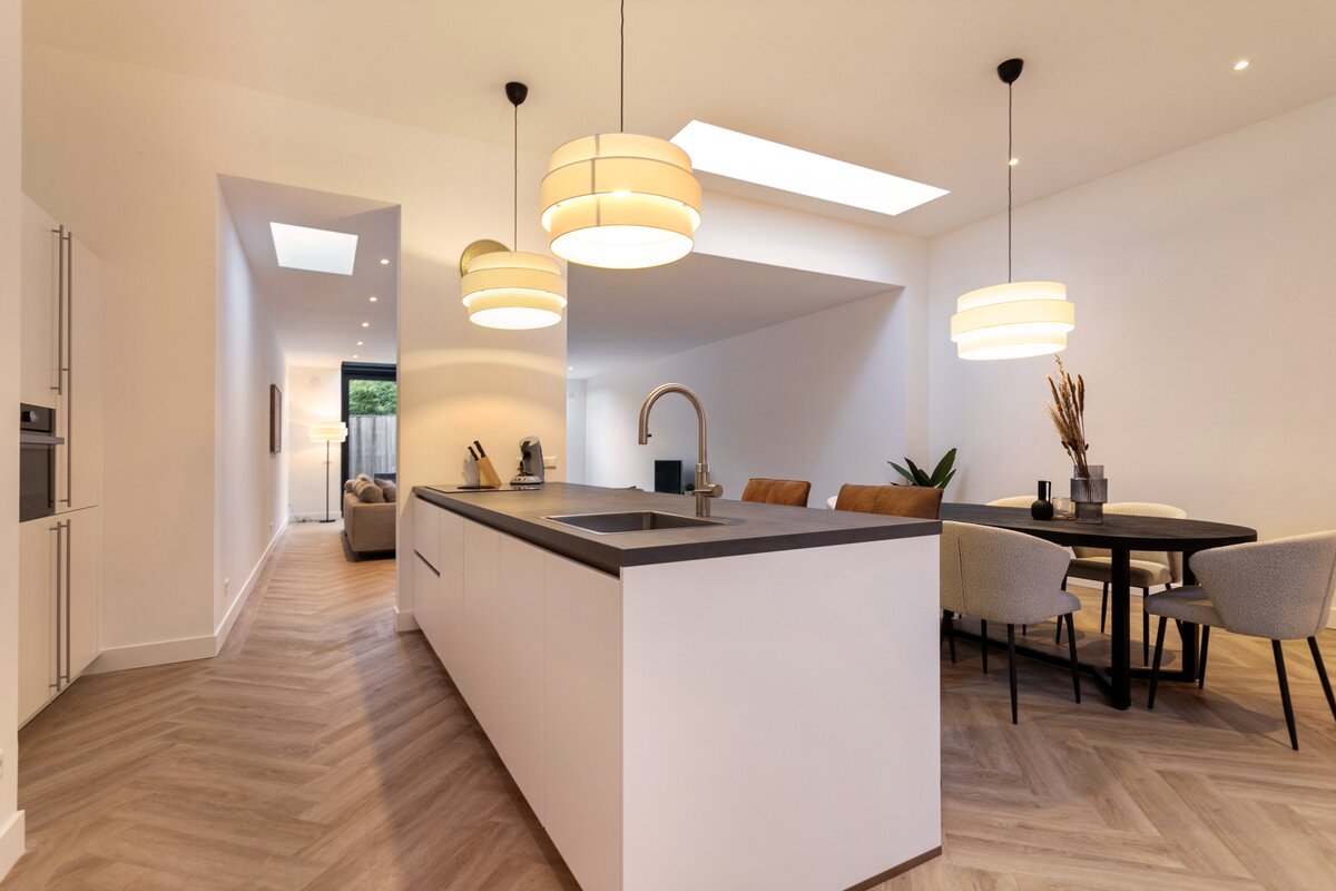 De moderne keuken met kookeiland vormt het hart van de woning – een uitnodigende plek voor borrels, diners en lange avonden met vrienden. Alles is tot in detail afgewerkt, waarbij comfort en stijl hand in hand gaan.