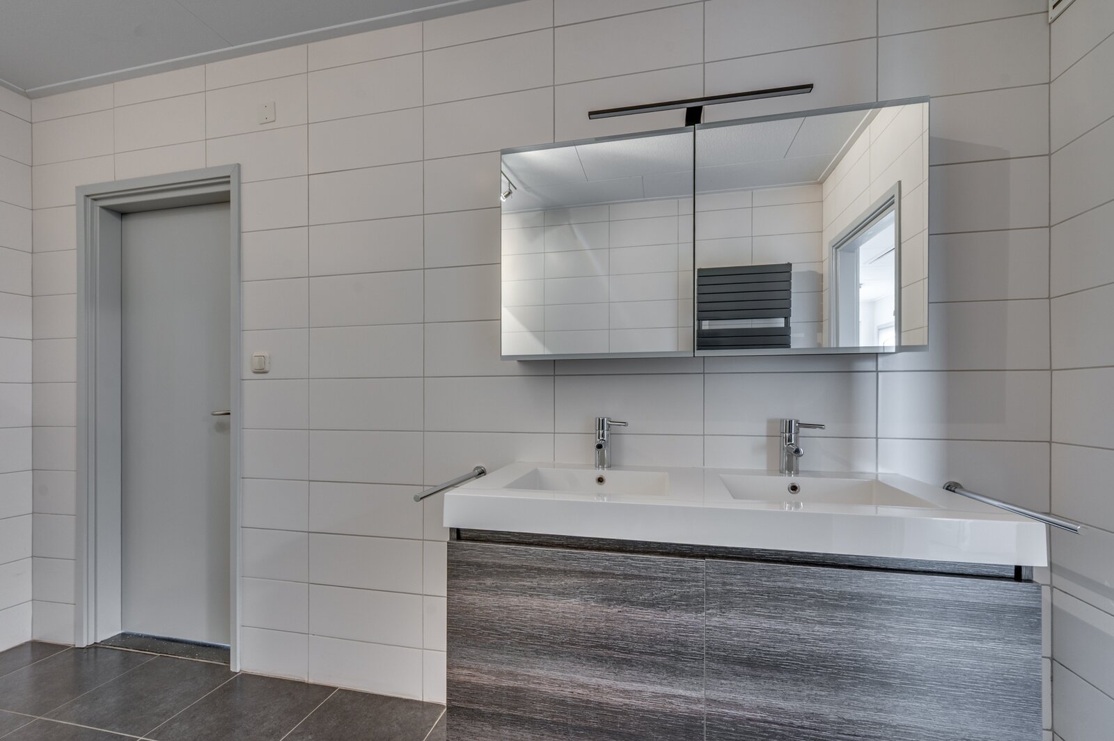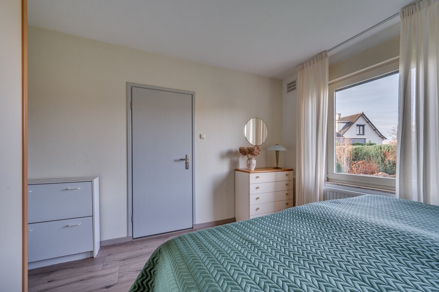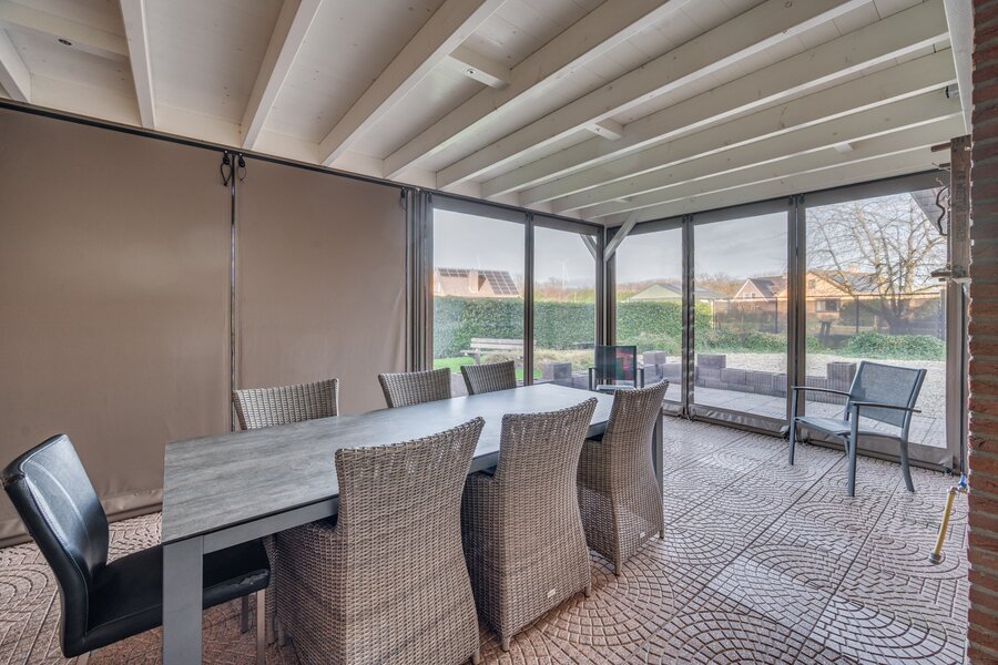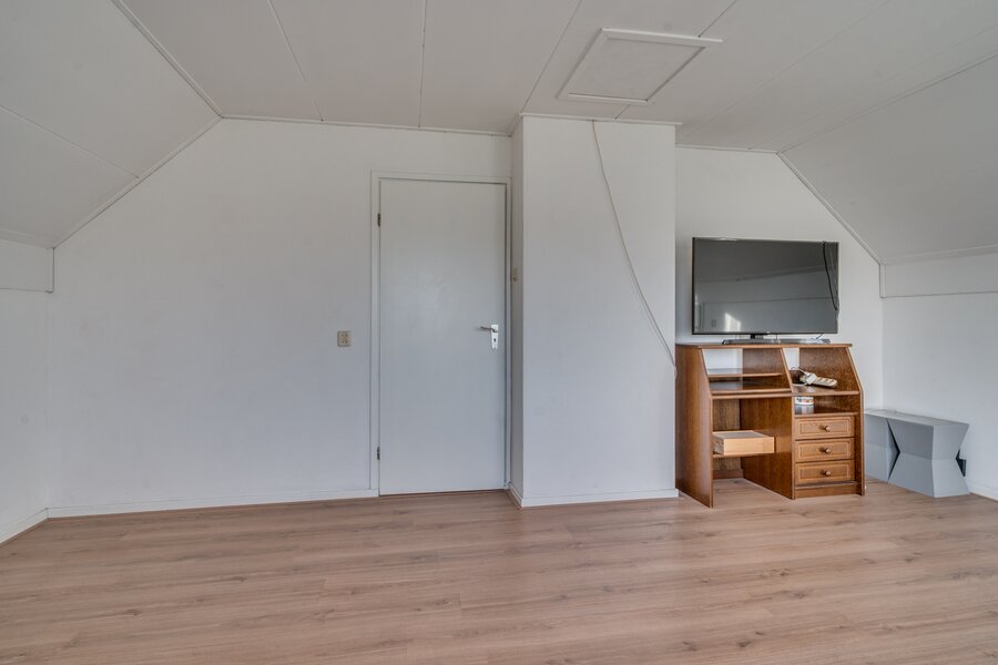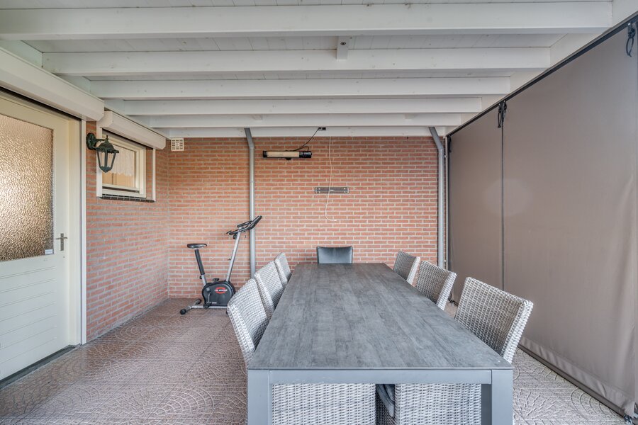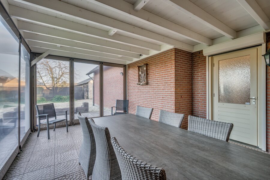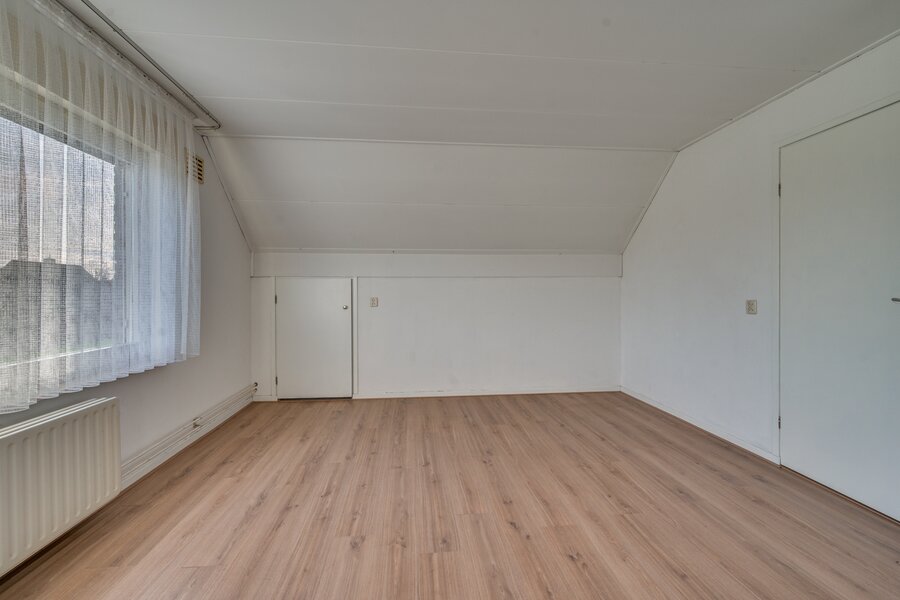 Vanuit de hal is er toegang tot de slaapkamer. De slaapkamer is ca. 15m² groot en is voorzien van een loopdeur. Middels een loopdeur is er toegang tot de badkamer. De badkamer is voorzien van een inloopdouche, dubbele wastafel met meubel, designradiator en natuurlijke ventilatie. De serre geeft een prachtig uitzicht over de tuin en is afsluitbaar middels zeil. De inpandige garage is voorzien van een elektrische poort, vliering en geeft de mogelijkheid om meerdere auto's in te plaatsen.