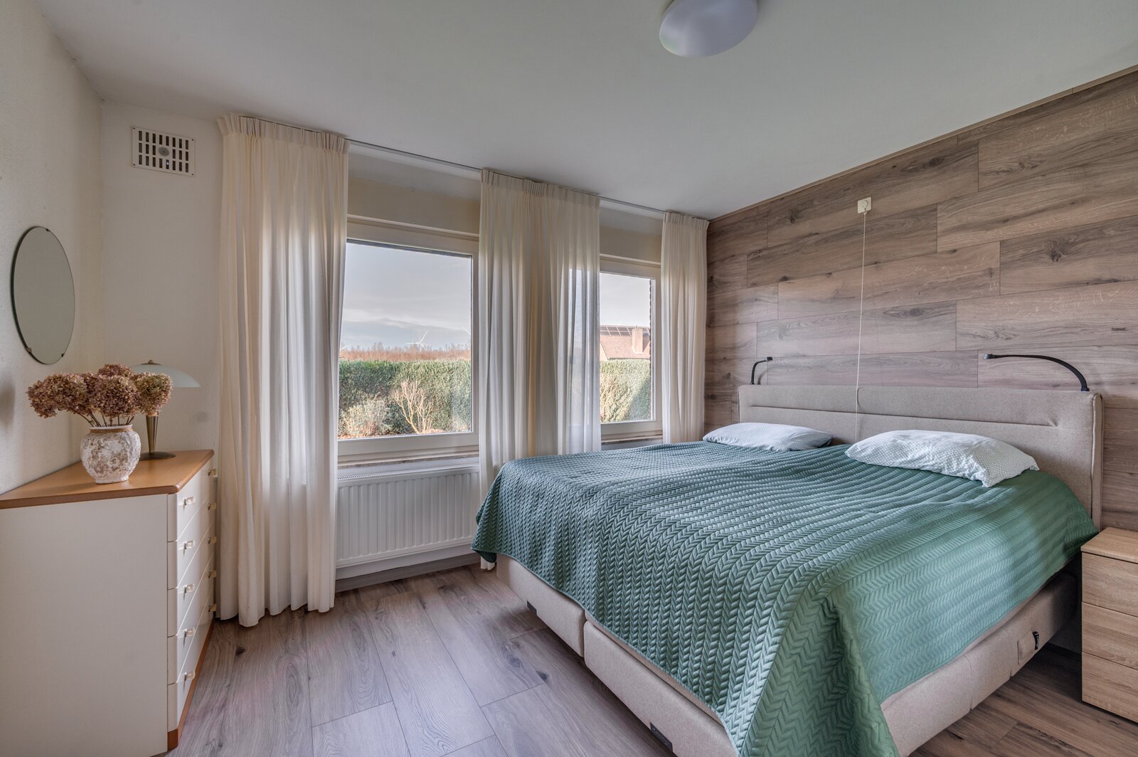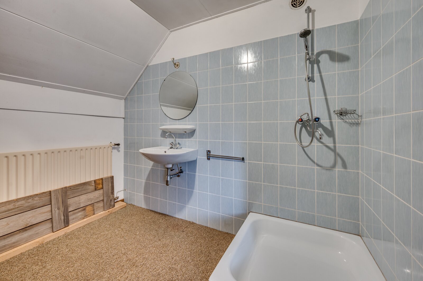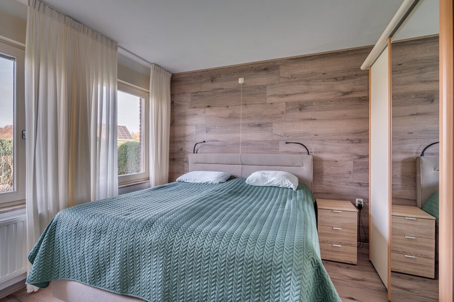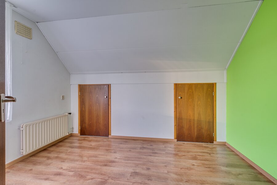 Vanuit de hal is er toegang tot de slaapkamer. De slaapkamer is ca. 15m² groot en is voorzien van een loopdeur. Middels een loopdeur is er toegang tot de badkamer. De badkamer is voorzien van een inloopdouche, dubbele wastafel met meubel, designradiator en natuurlijke ventilatie. De serre geeft een prachtig uitzicht over de tuin en is afsluitbaar middels zeil. De inpandige garage is voorzien van een elektrische poort, vliering en geeft de mogelijkheid om meerdere auto's in te plaatsen.