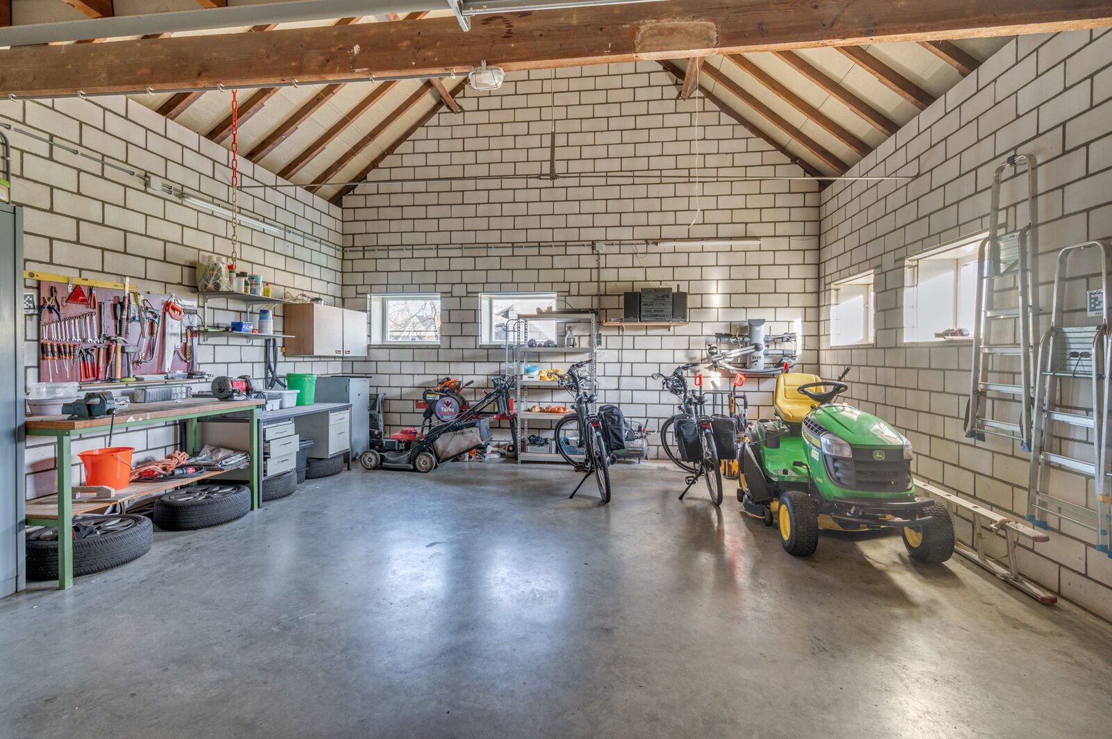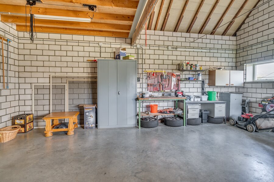 Aan de achterzijde is de 2e garage gelegen met aansluitend overkapping. De garage is ca. 42m² groot. De overkapping welke aansluitend is aan de garage heeft de mogelijkheid tot opslag.