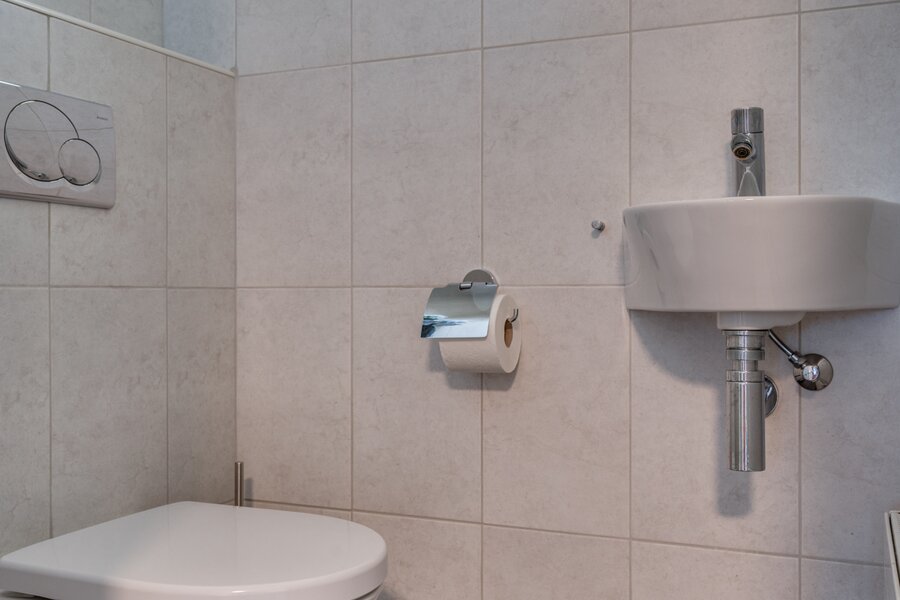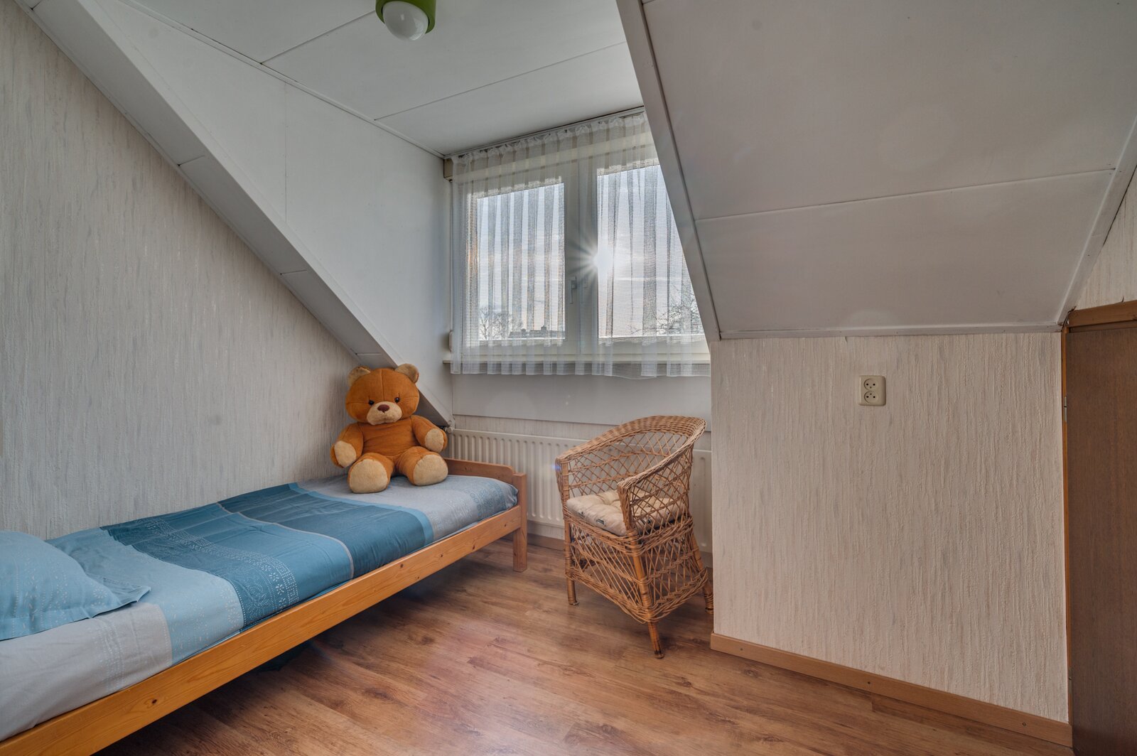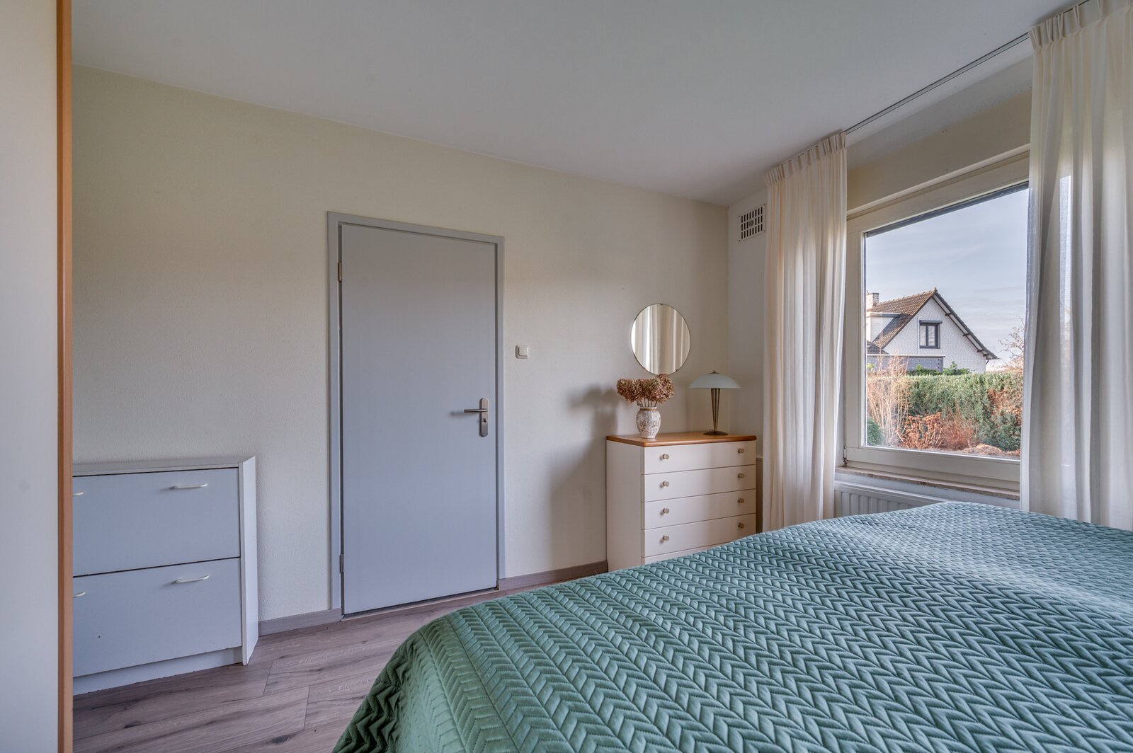 De overloop geeft toegang tot 3 slaapkamers, separate toiletruimte en badkamer. Alle 3 de slaapkamers beschikken over opbergruimte, rolluiken en zijn voorzien van een laminaatvloer. De separate toiletruimte is deels betegeld en voorzien van een toilet met Sanibroyeur en fontein. De badkamer beschikt over een douche en wastafel en is zeer ruim van opzet.