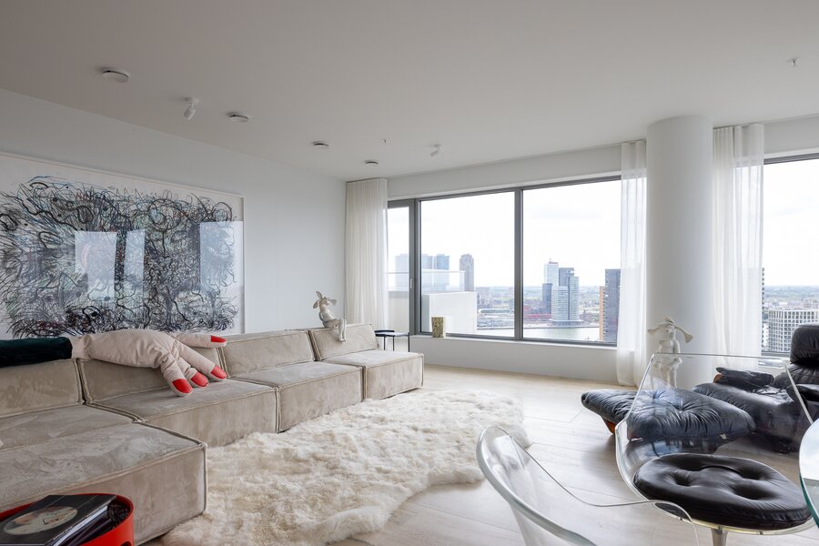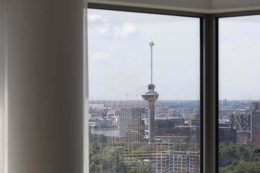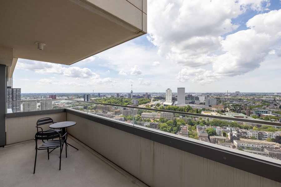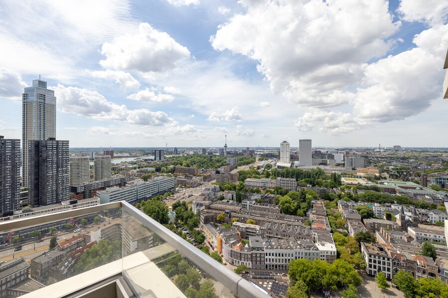 Wonen op hoogte krijgt een nieuwe dimensie in dit prachtige vierkamer hoekappartement op de 31e verdieping van The CoolTower. Gelegen op de meest ideale zuidwesthoek van het gebouw biedt dit appartement een werkelijk fenomenaal uitzicht over Rotterdam, de Maas, het Scheepvaartkwartier en de havens. Met een woonoppervlakte van 144 m², twee ruime terrassen van in totaal 28 m² én een zeer hoogwaardige afwerking is dit een unieke kans in het hart van de stad.