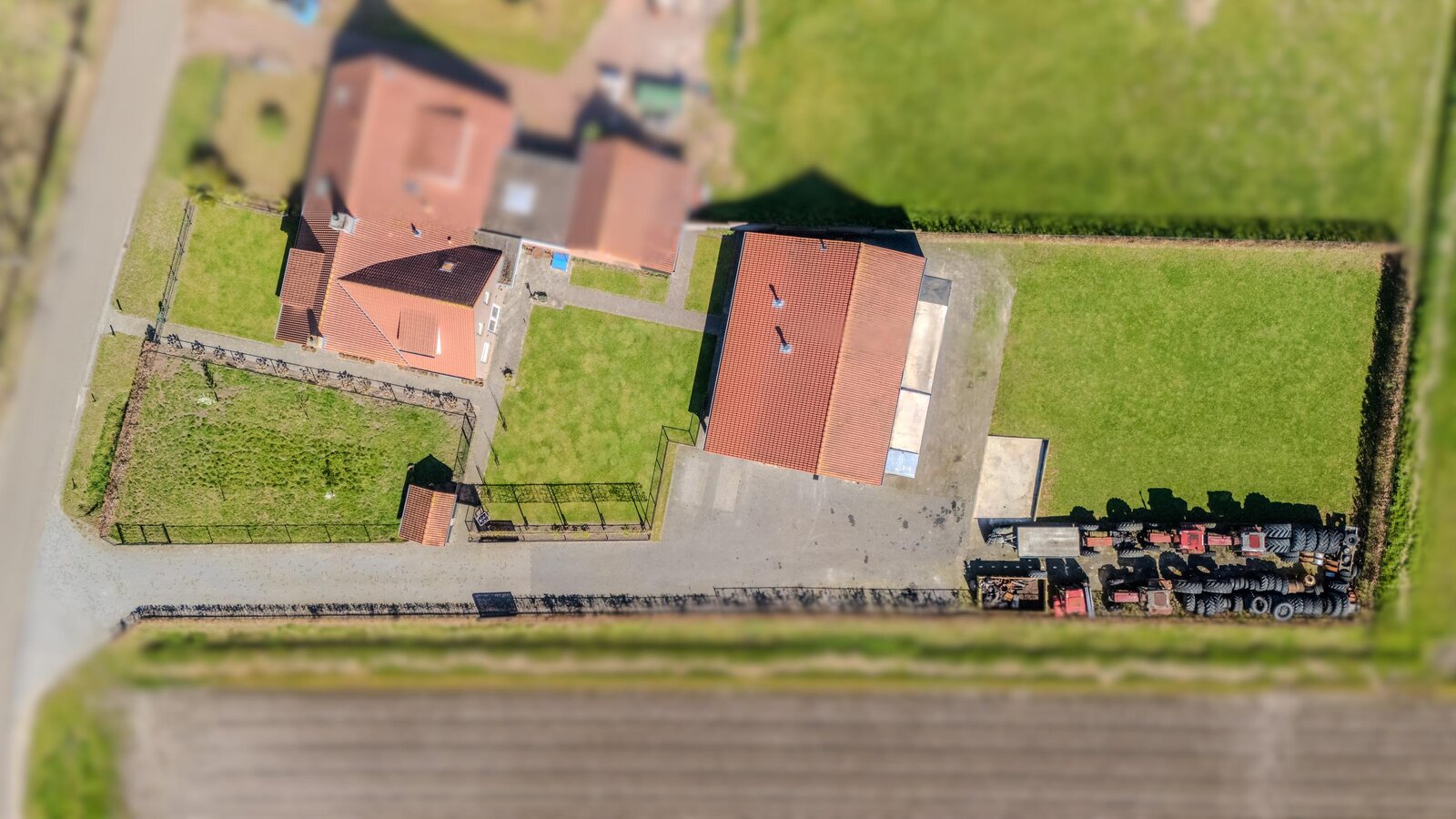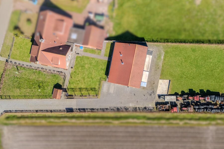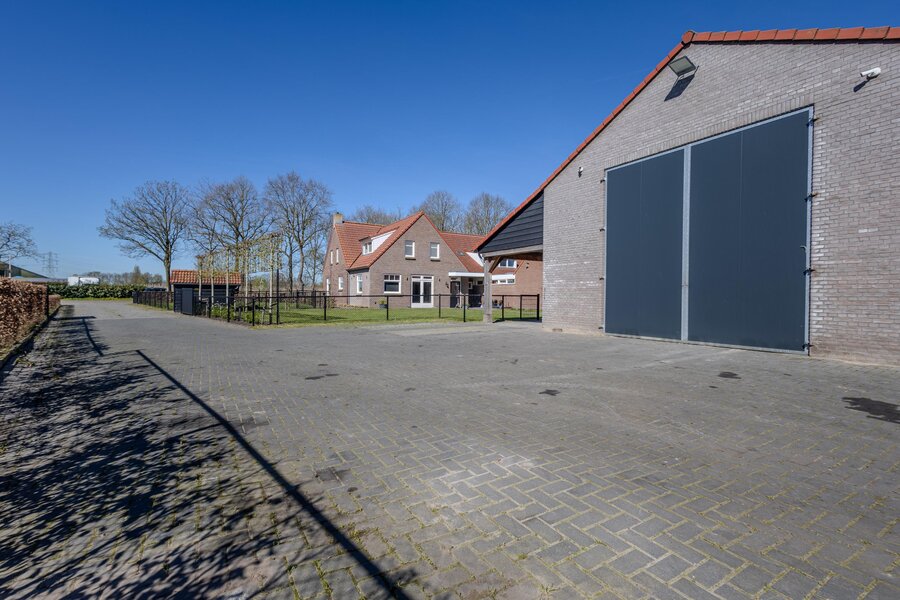 Een eigen oprit loopt vanaf dit achterste gedeelte langs de loods naar de straatzijde en biedt volop parkeergelegenheid op eigen terrein. De toegang wordt afgesloten middels een elektrische poort.