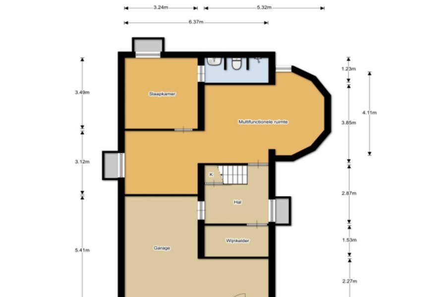 • Bijkeuken met eigen entree en opstelling was/droogcombinatie;