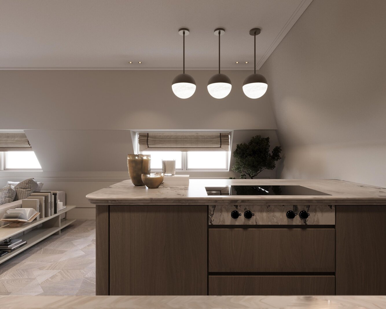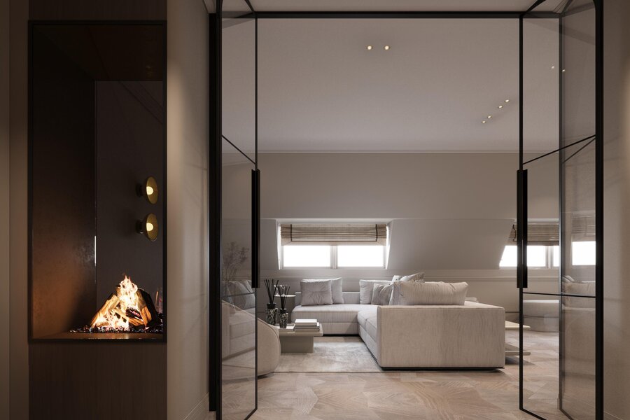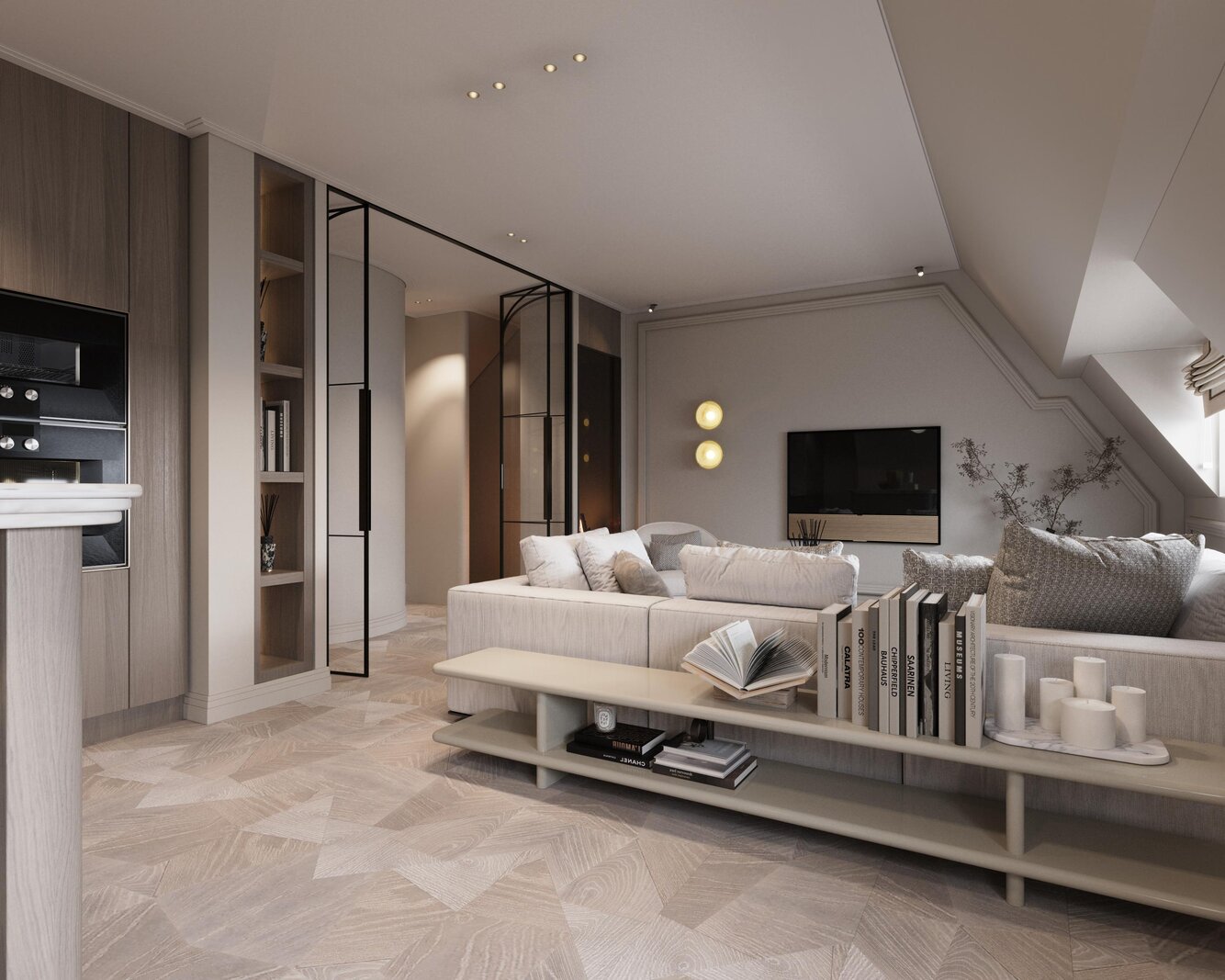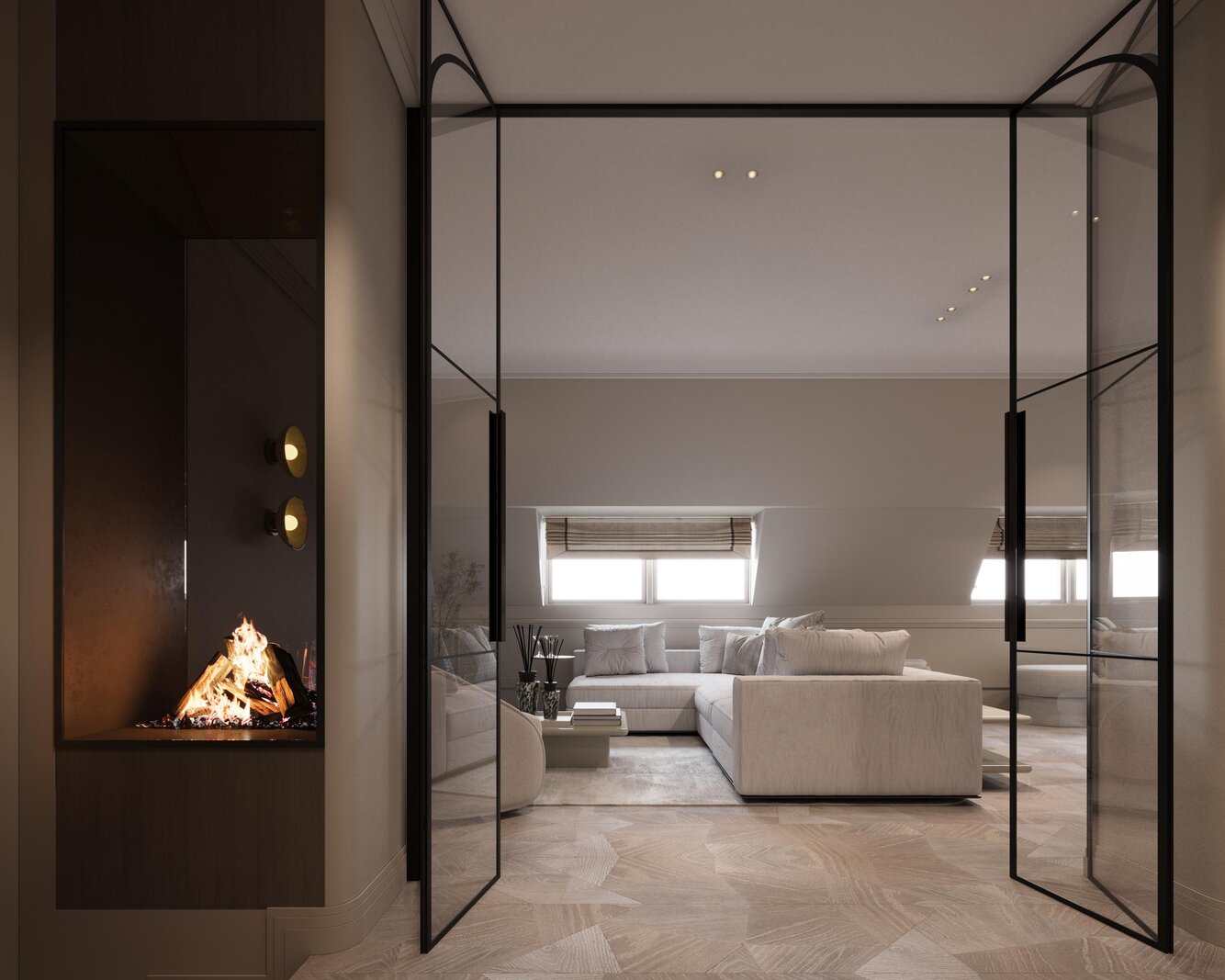 The property is being completely renovated with great attention to detail, preserving its monumental character while introducing a refined, contemporary finish. The residences will be delivered turn-key and are defined by a carefully curated interior concept, featuring premium materials such as natural stone, bespoke woodwork, bronze accents, and sophisticated lighting.