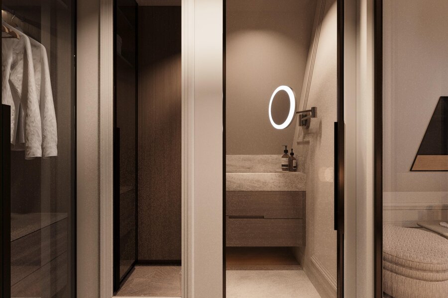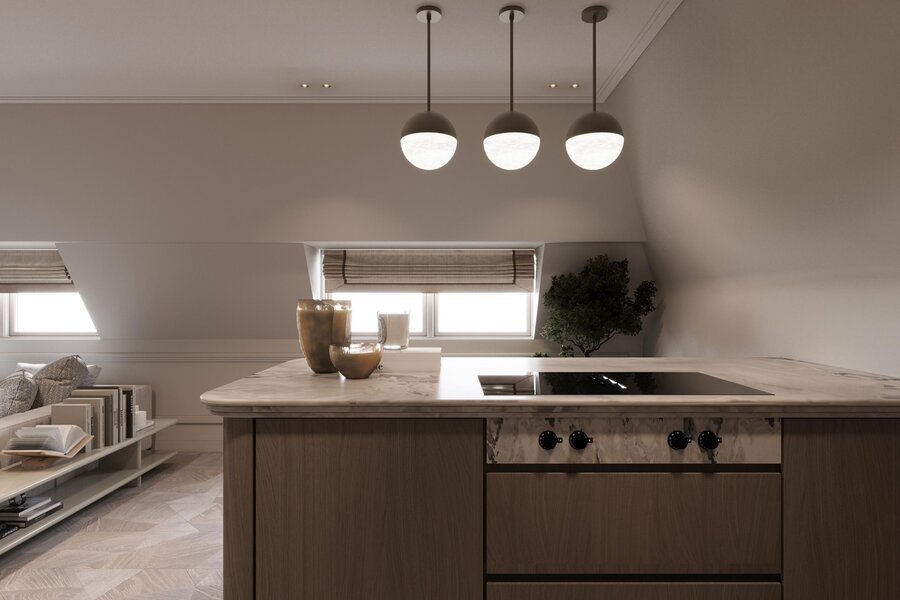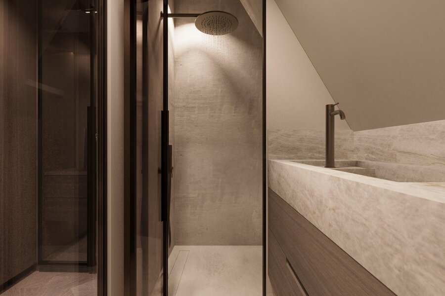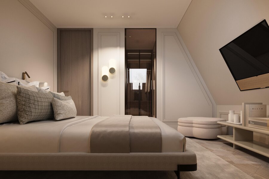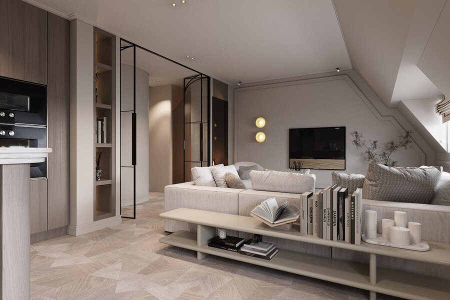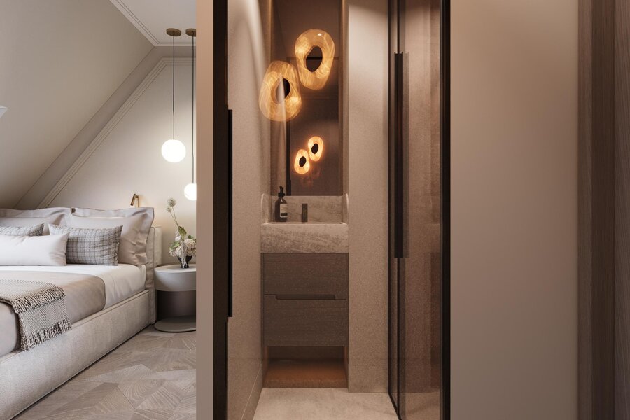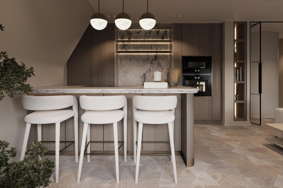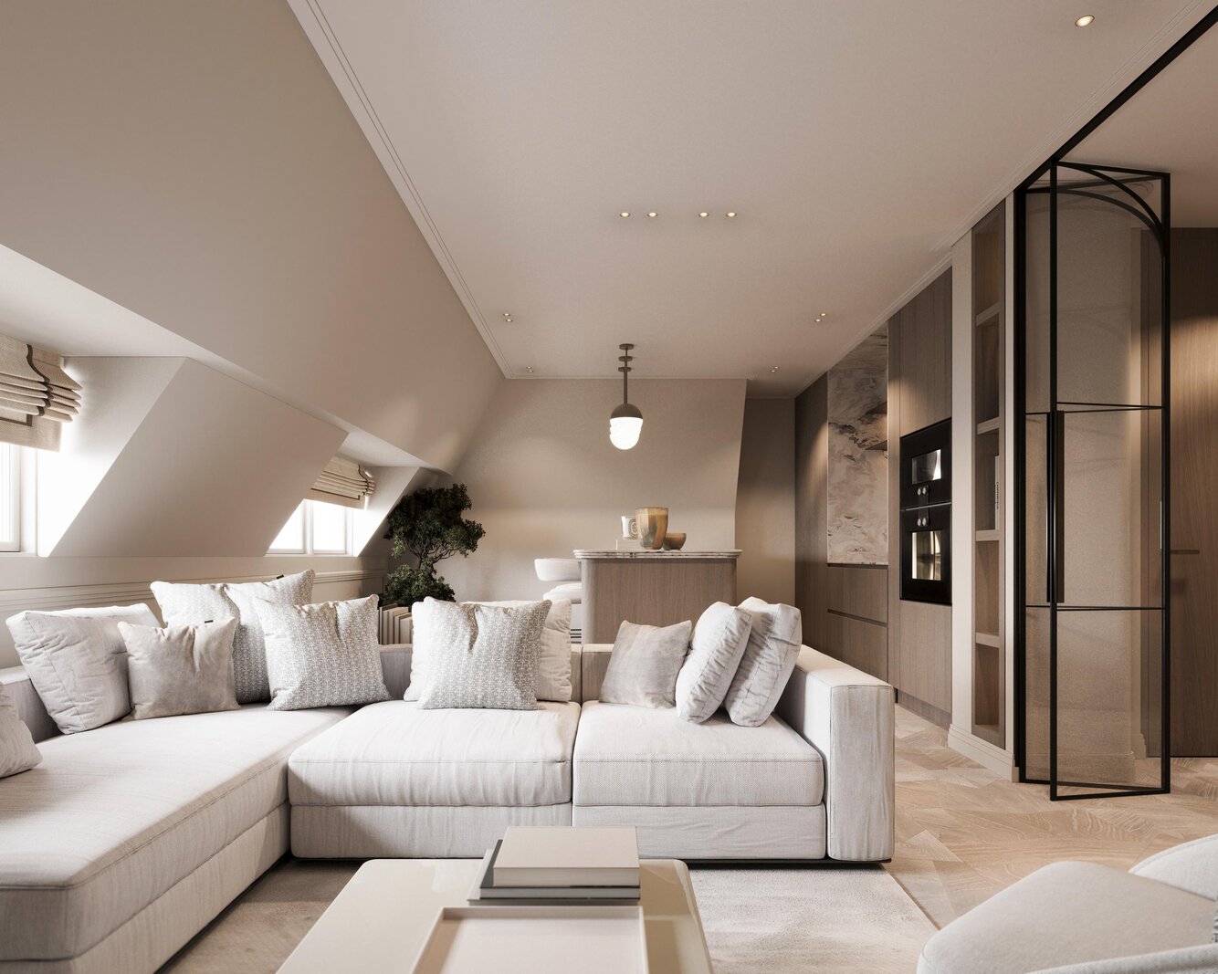 The property is being completely renovated with great attention to detail, preserving its monumental character while introducing a refined, contemporary finish. The residences will be delivered turn-key and are defined by a carefully curated interior concept, featuring premium materials such as natural stone, bespoke woodwork, bronze accents, and sophisticated lighting.