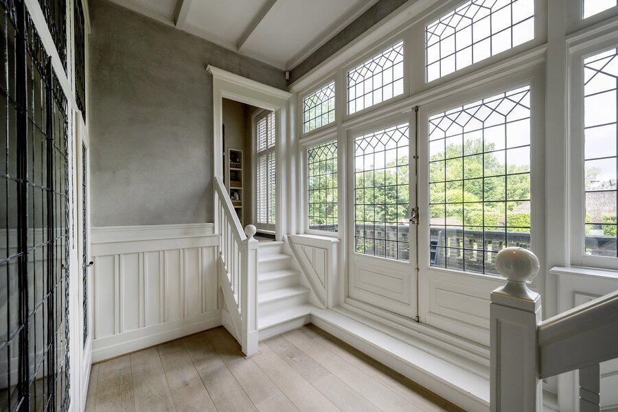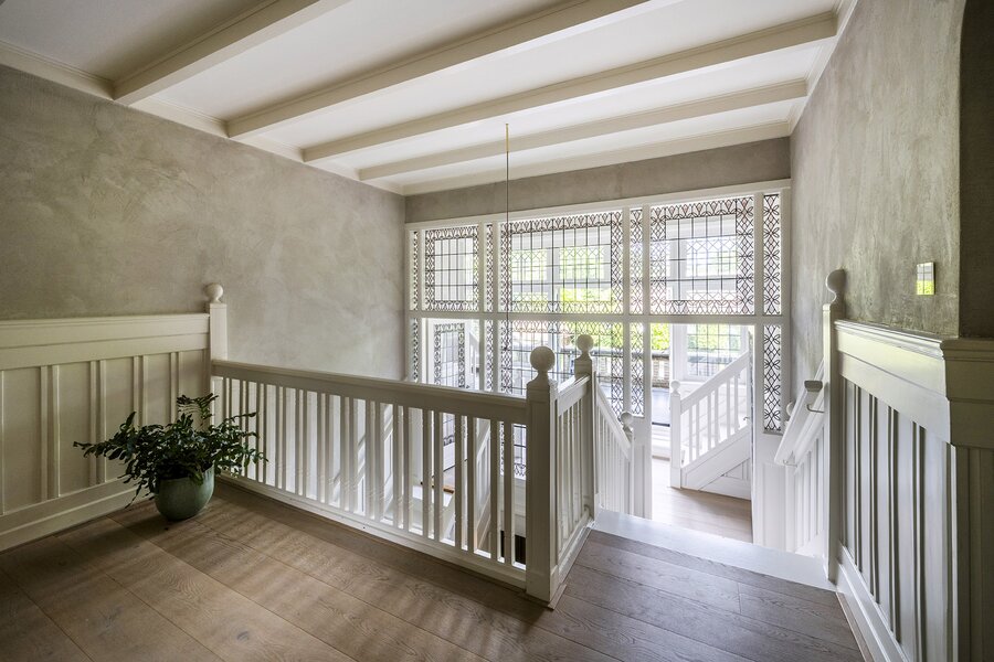 De villa is met behoud van stijl op een zeer hoogwaardig niveau geheel gemoderniseerd met behoud van alle originele stijlkenmerken en heeft mede door haar symmetrische indeling een prachtig en bijzonder karakter. De vestibule en de hal zijn van zeldzame kwaliteit en uitstraling door het gebruik van een grote hoeveelheid glas-in-lood.