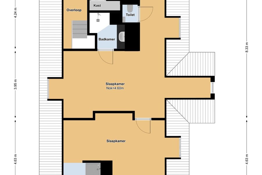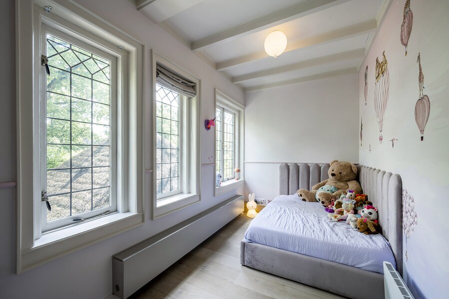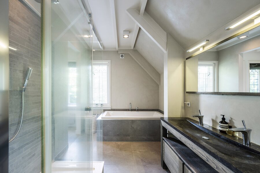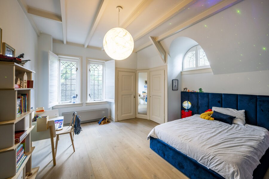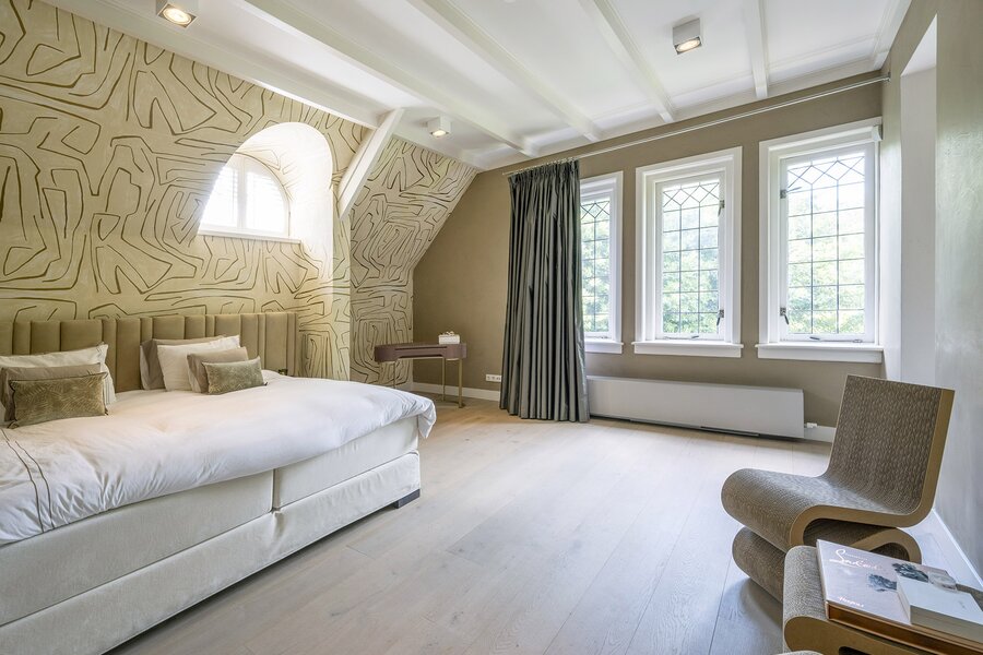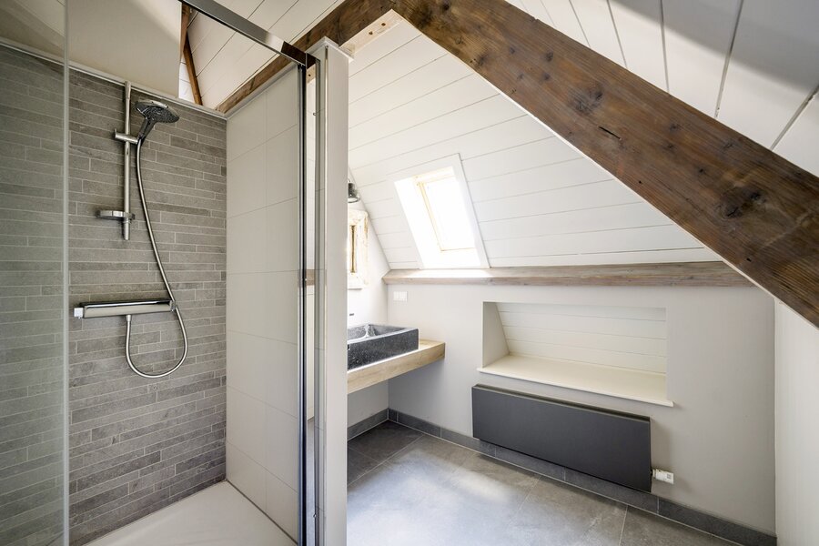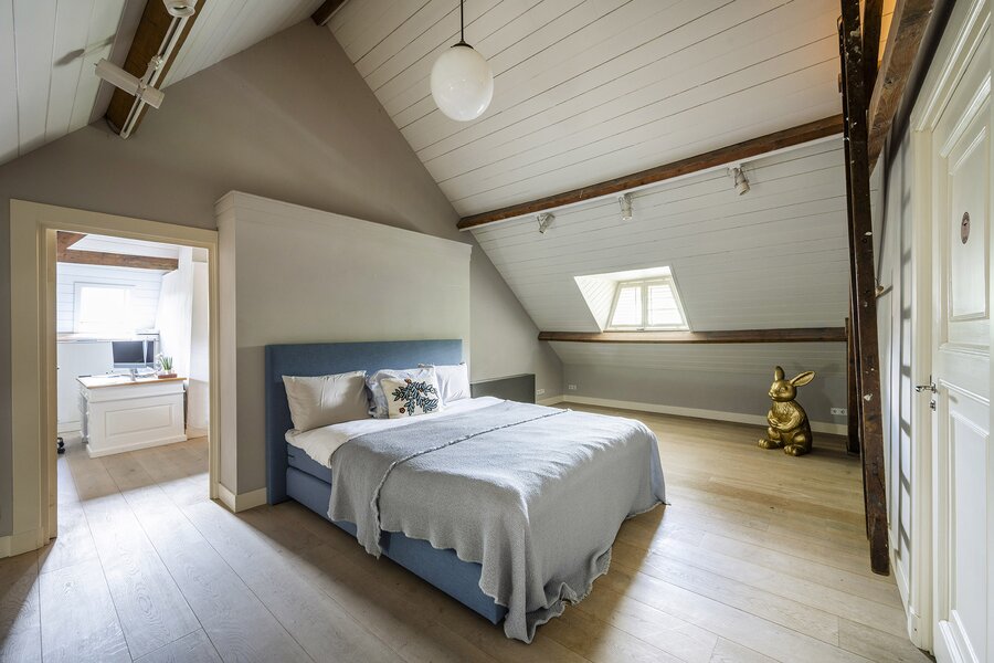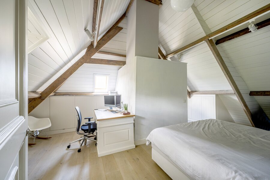 De ruime zolderverdieping, bereikbaar via een vaste trap, geeft u toegang tot twee extra slaapkamers (waarvan één met een vide) met ieder een eigen badkamer (wastafel en douche) en separaat toilet. Zeer fraai afgewerkt met hoge plafonds tot in de nok.