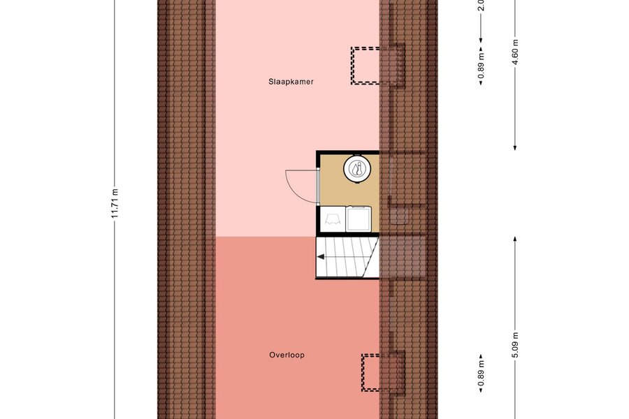 Ruime voorzolder met veel bergruimte en aparte ruimte voor de aansluiting van de wasmachine, wasdroger en mechanische ventilatie. Een vierde ruime slaap/werkkamer met dakvensterkapel en de mogelijkheid om eventueel een vijfde slaapkamer te creëren. Op deze verdieping ligt ook de pvc vloer in visgraatmotief. Overige bergruimte bevindt zich in de knieschotten rondom.