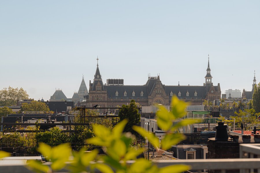 The rooftop terrace is the true ‘cherry on top’. From here, you’ll enjoy the Vondelpark at its most beautiful, with unobstructed views of the greenery and the city beyond.