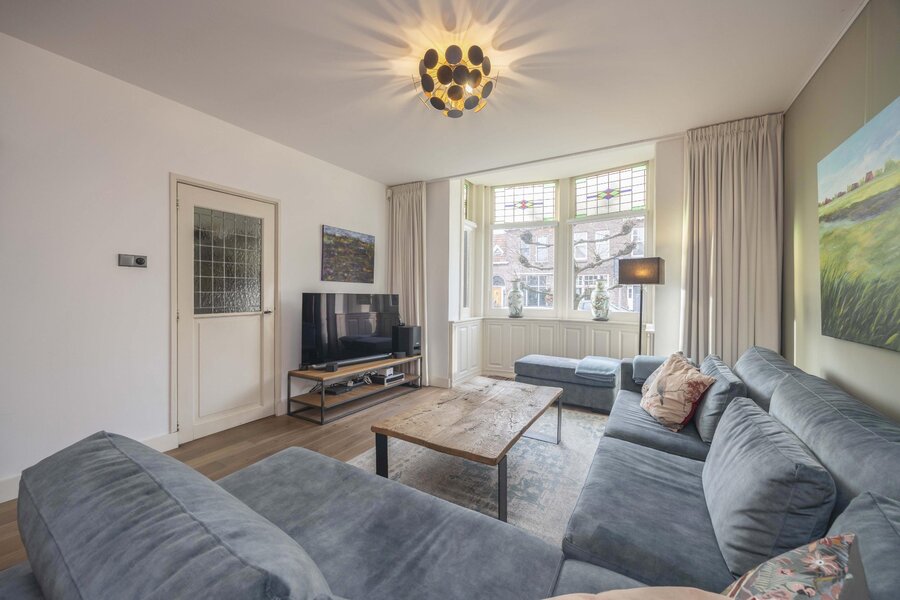 In de geliefde Mr. van Coothstraat in Waalwijk staat deze verzorgde, vrijstaande en fors uitgebouwde woning met een prettige indeling en een sterke balans tussen karakter en hedendaags comfort. De uitstraling van de woning wordt in belangrijke mate bepaald door de bouwstijl en het behouden glas in lood, dat op meerdere plaatsen aanwezig is en zorgt voor een herkenbaar en aangenaam karakter. In combinatie met moderne voorzieningen zoals een complete woonkeuken, vloerverwarming in de aanbouw en airconditioning in de hoofdslaapkamer, biedt de woning comfortabel en praktisch woongebruik. Het geheel beschikt over vier slaapkamers, diverse bergruimtes en een fraai aangelegde diepe achtertuin met tuinhuis en een praktische lange garage, die via de achterzijde toegankelijk is en zeer geschikt is voor autostalling.