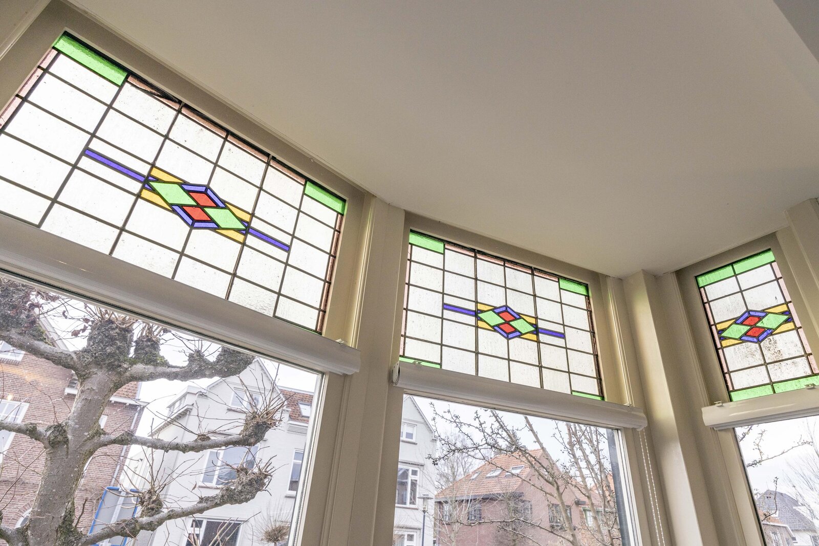 Bij binnenkomst wordt u ontvangen in de hal, waar de voordeur met glas- in- loodramen direct het karakter van de woning benadrukt. In de hal bevinden zich tevens de toiletruimte en de meterkast.