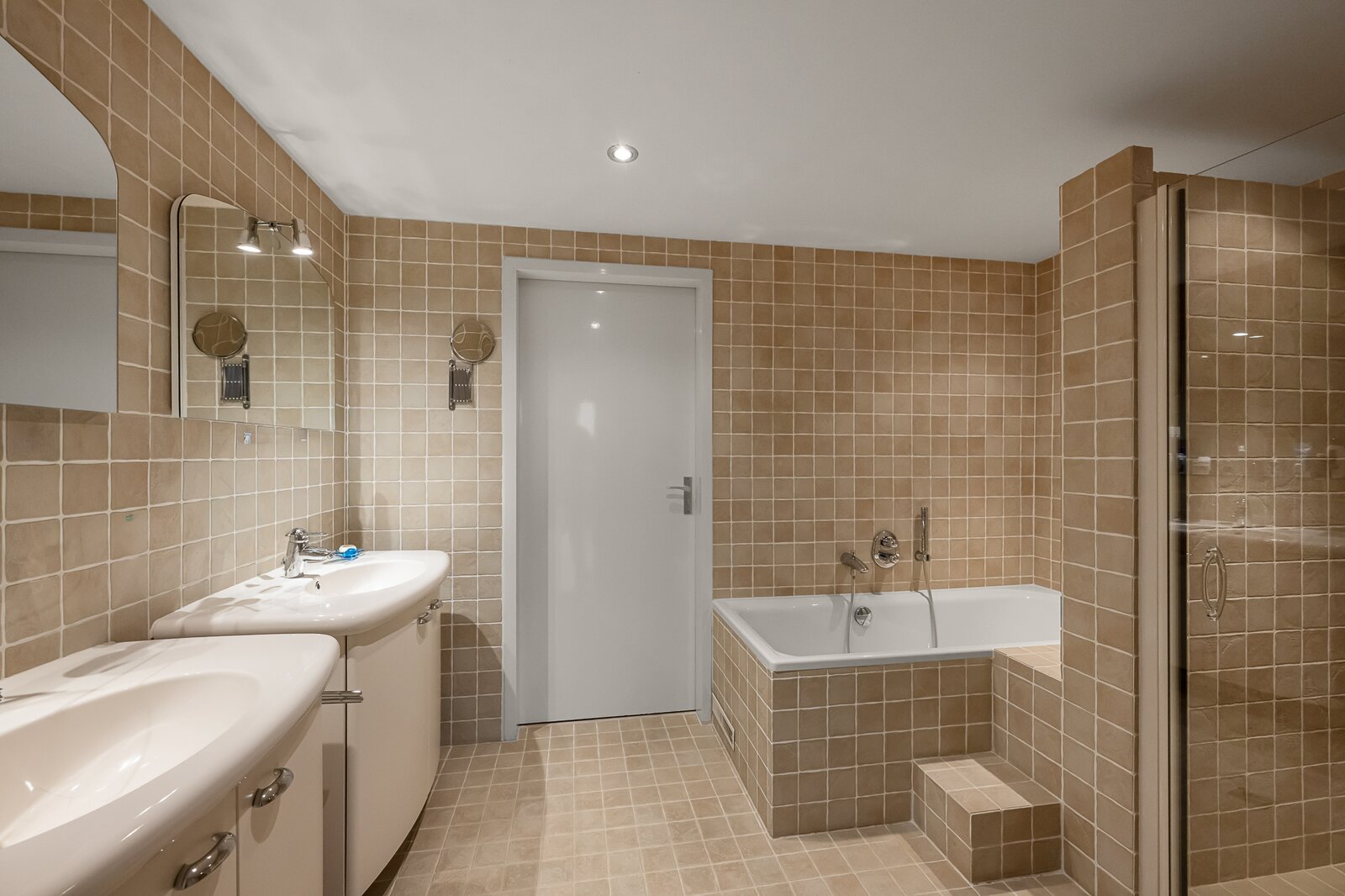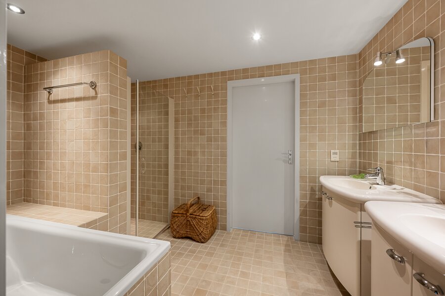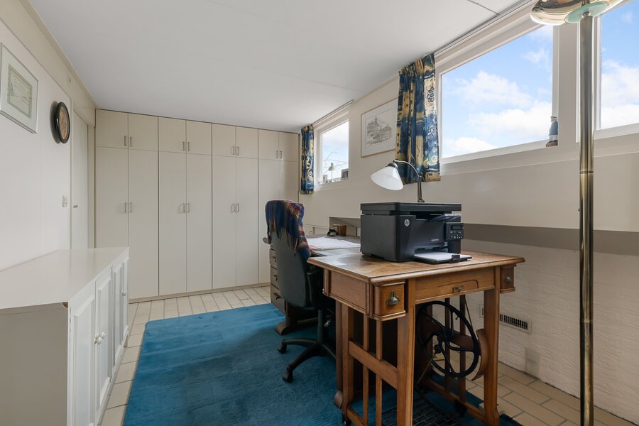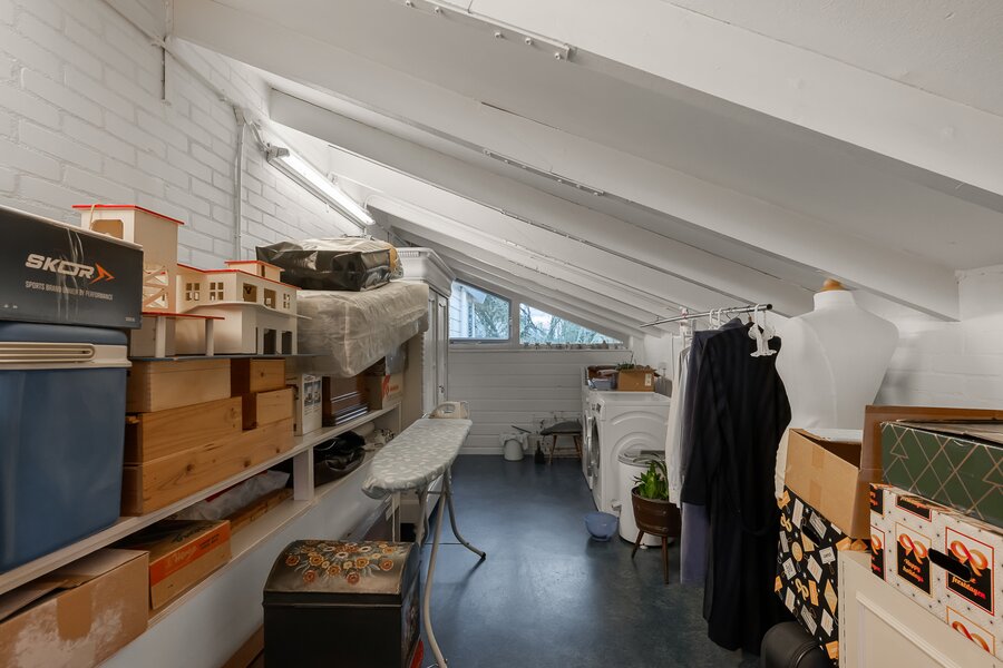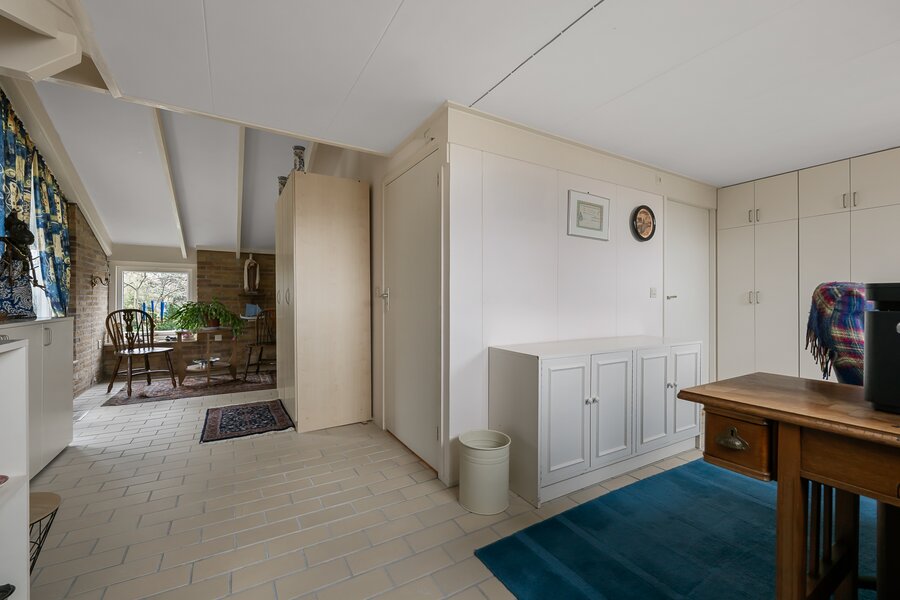 Op de eerste verdieping arriveert u op een zeer ruime overloop. Vanaf hier zijn drie goed bemeten slaapkamers bereikbaar, waarvan één eenvoudig te splitsen is, zodat hier vier slaapkamers gerealiseerd kunnen worden. De indeling is praktisch en biedt uitstekende mogelijkheden voor gezinnen, thuiswerkers of iedereen die extra ruimte wenst. Op deze verdieping bevindt zich tevens de tweede badkamer, voorzien van ligbad, wastafel en toilet. Tot slot is er een riante berging met wasmachine- en drogeraansluiting en boiler.