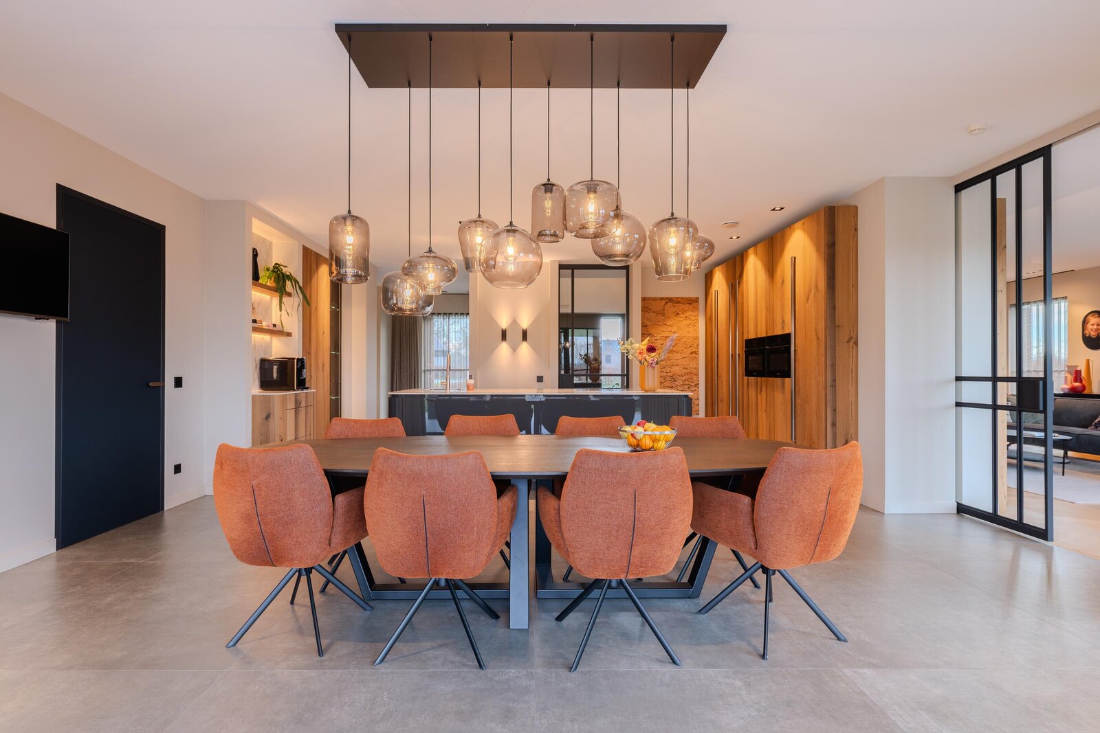 De hoogwaardige Miele-apparatuur — waaronder twee combi(stoom)ovens, een grote koelkast, een inductiekookplaat met geïntegreerde afzuiging, Quooker alles-in-1-kranen (kokend, gekoeld en bruisend water) en een gootsteen met voedselvermaler — wordt aangevuld met een royale hoeveelheid opbergruimte, waardoor de keuken zowel luxueus als praktisch is. Het aangrenzende eetgedeelte met zicht op de achtertuin en de speciaal ingerichte koffiecorner maken dit bij uitstek de plek om samen te komen: van ontbijten tot borrelen en van huiswerk maken tot lange diners met familie en vrienden
