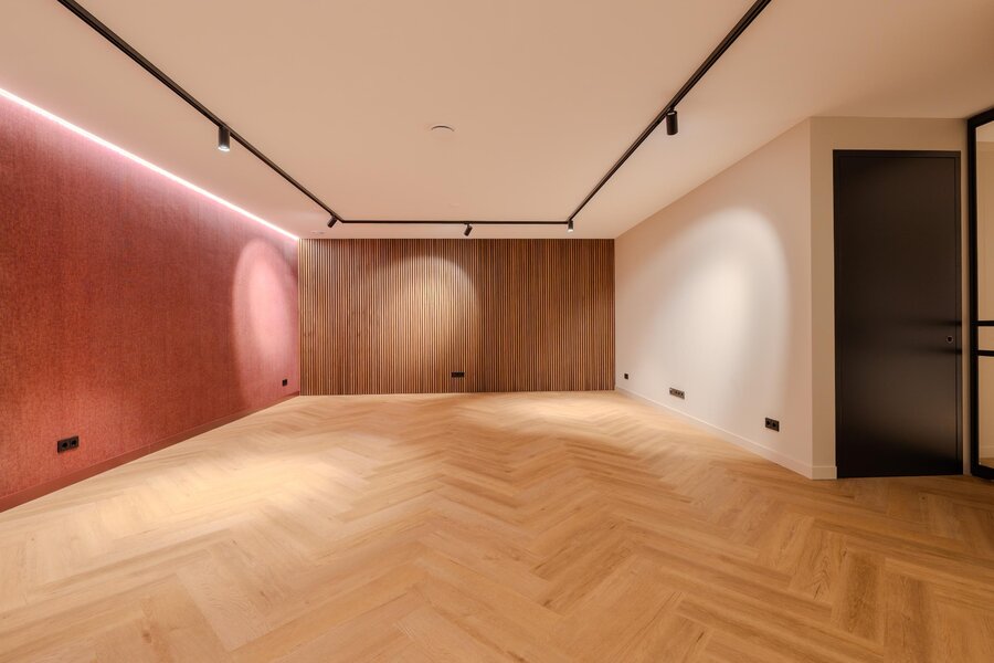 Het souterrain strekt zich uit onder de volledige villa en vormt een complete, volwaardige woonlaag met drie royale ruimtes, momenteel ingericht als entertainment-/bioscoopkamer, sport- en hobbyruimte en een extra vijfde slaapkamer met derde badkamer. Deze gehele verdieping is afgewerkt op hetzelfde hoge niveau als de rest van de villa, met onder andere vloerverwarming, designbehang en sfeervolle verlichting.