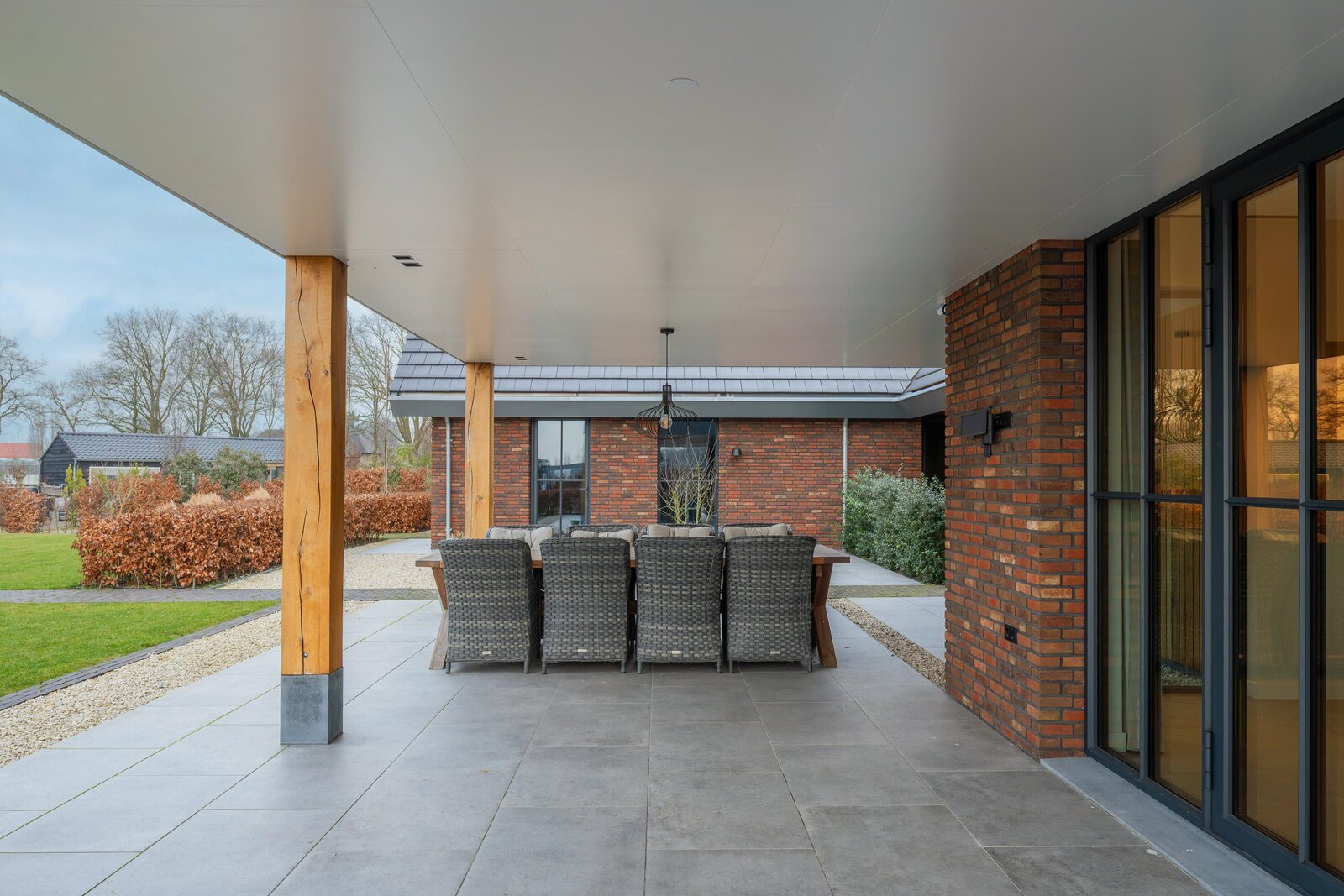 De magnifiek aangelegde tuin rondom is volwassen, groen en met zorg ingericht met beukenhagen, siergrassen en rijk bloeiende borders, die in het voorjaar en de zomer zorgen voor kleur en sfeer. Kinderen vermaken zich eindeloos in de achtertuin op het grote gazon met speeltoestellen en trampoline, terwijl jij vanaf het terras geniet van een kop koffie, ruimte en uitzicht op de omliggende natuur.