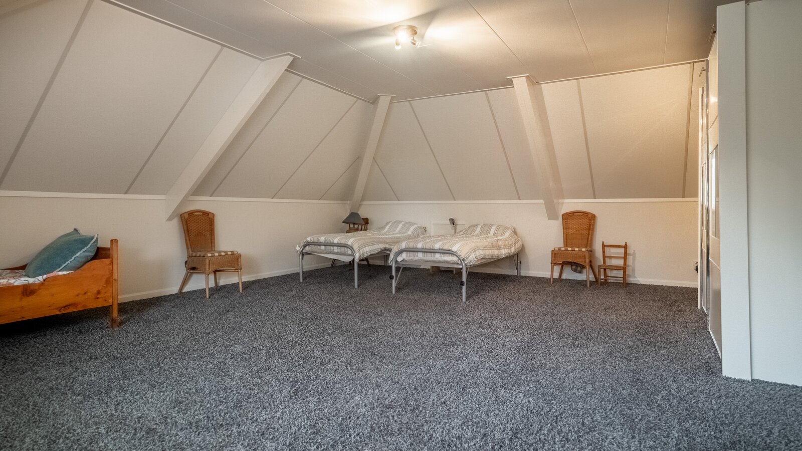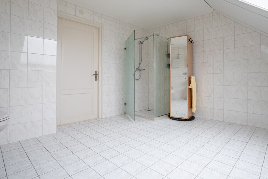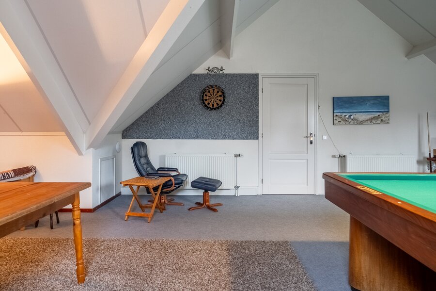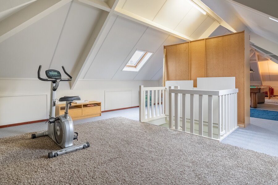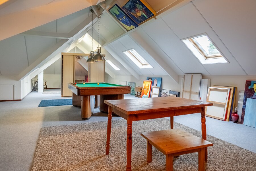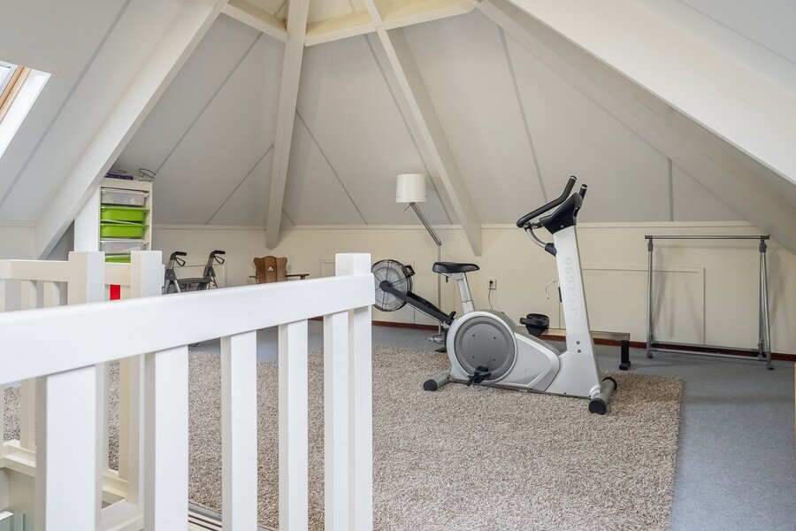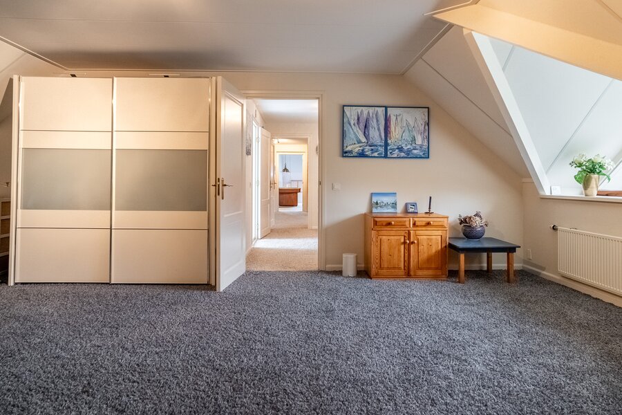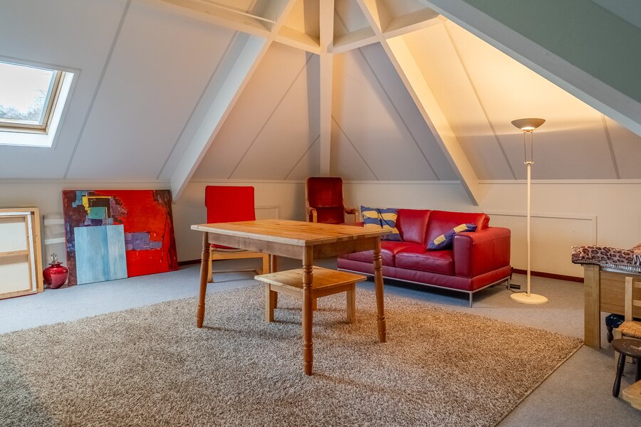 Op de verdieping bevinden zich drie ruime kamers (40, 38, 108 m²), waarvan één momenteel in gebruik is als hobbyruimte. Uiteraard kan deze ruimte eenvoudig worden ingericht als extra slaapkamer, werkkamer of speelkamer . De royale opzet biedt volop flexibiliteit voor diverse woonwensen.