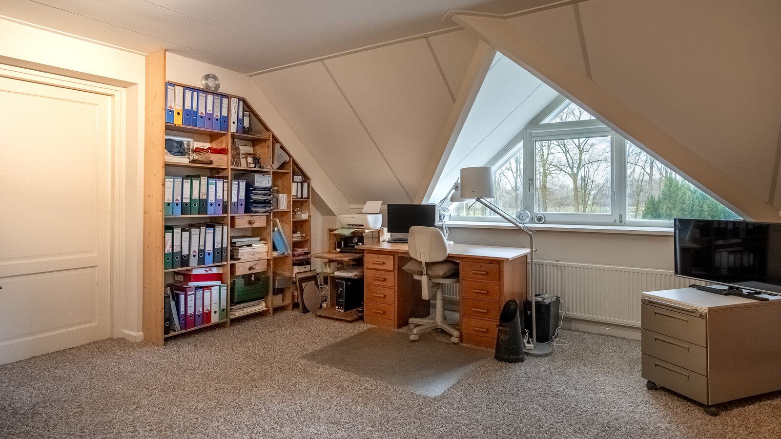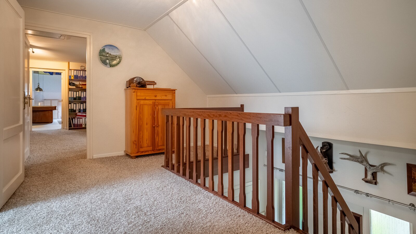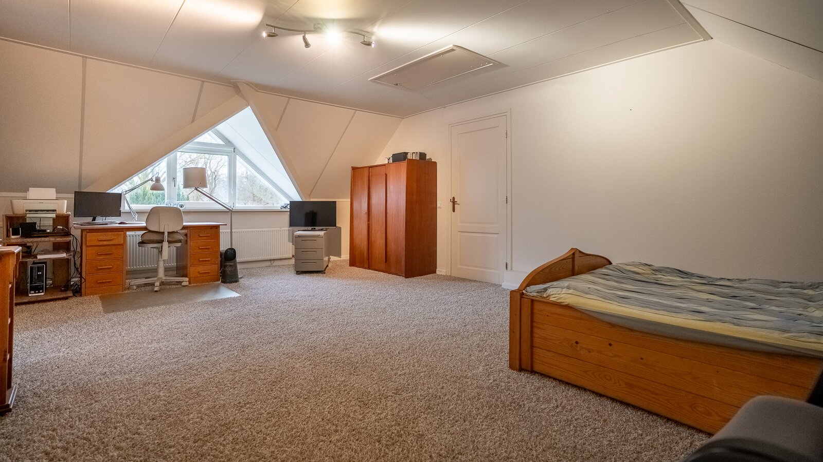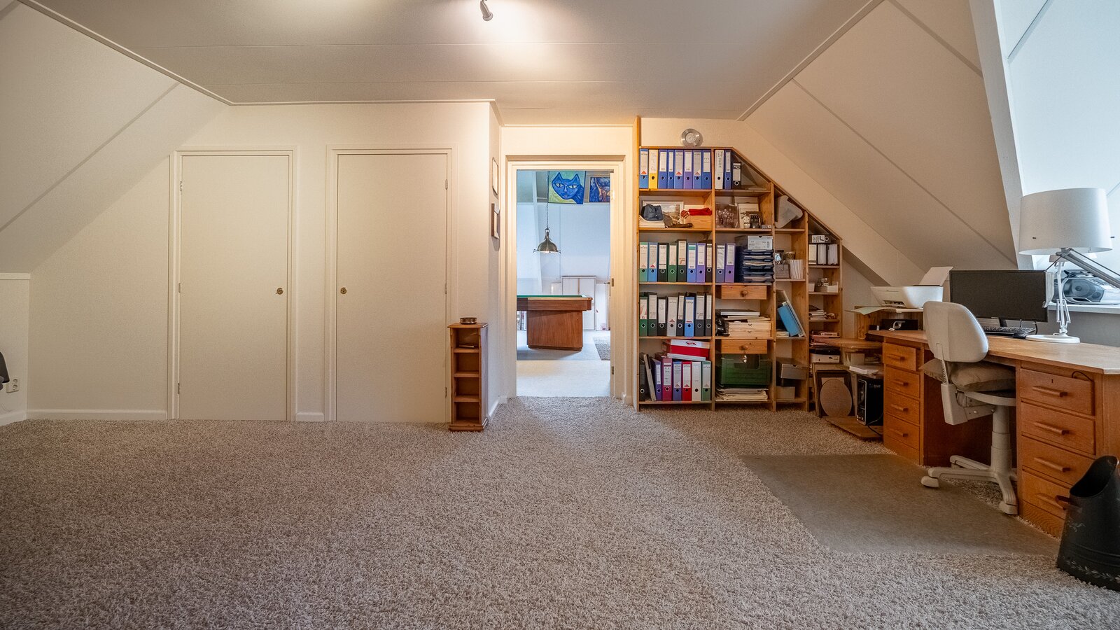 Op de verdieping bevinden zich drie ruime kamers (40, 38, 108 m²), waarvan één momenteel in gebruik is als hobbyruimte. Uiteraard kan deze ruimte eenvoudig worden ingericht als extra slaapkamer, werkkamer of speelkamer . De royale opzet biedt volop flexibiliteit voor diverse woonwensen.