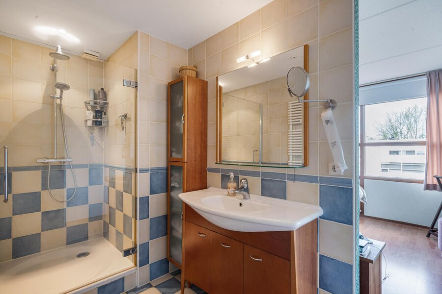 Op de tweede verdieping vind je de 6e slaapkamer met een eigen badkamer voorzien van douche en wastafel. Ook is hier nog een separate berging.