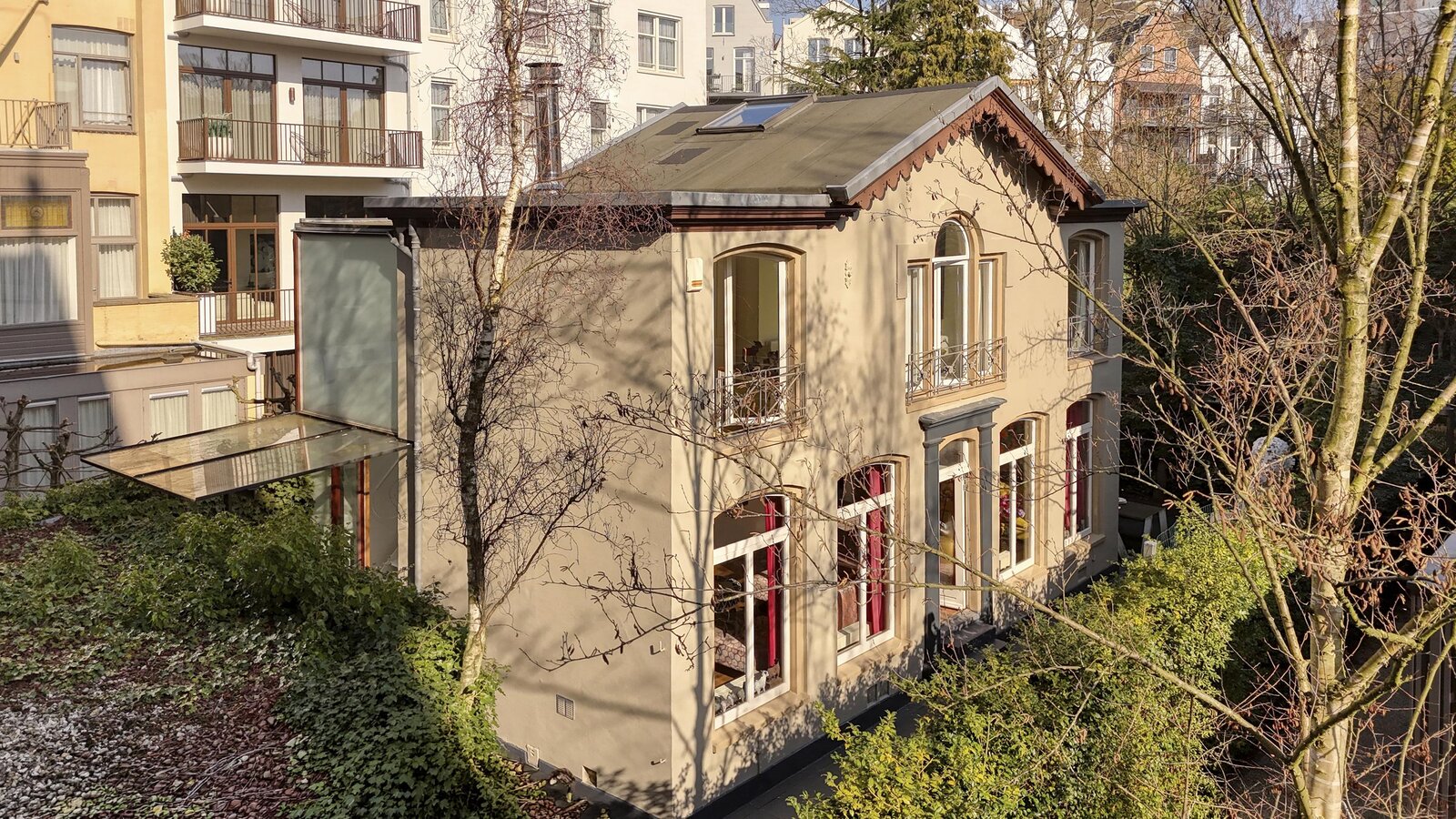 Wat direct opvalt, is de rust. Je hoort de stad nauwelijks, terwijl je er middenin zit. De combinatie van groen, ruimte en privacy maakt dat dit huis eerder aanvoelt als een villa dan als een stadswoning.