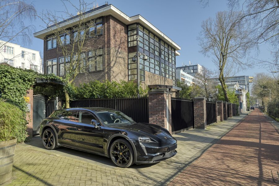Via the private driveway and on-site parking, you arrive at the property — something already exceptional in Amsterdam.