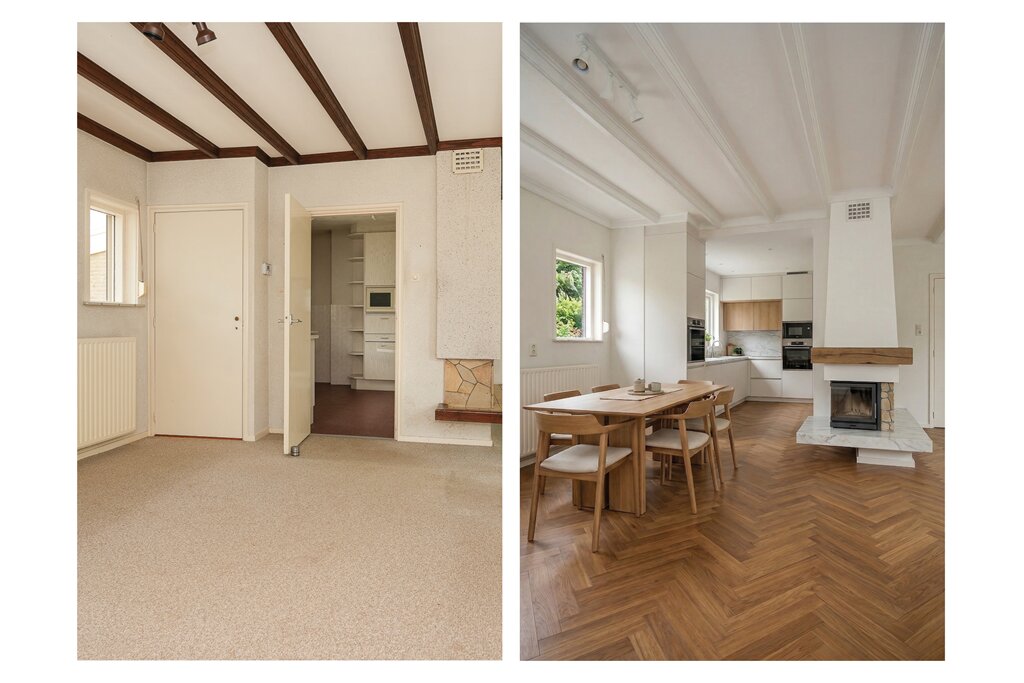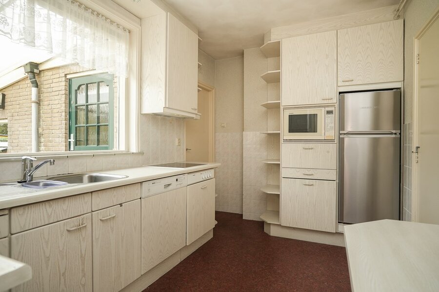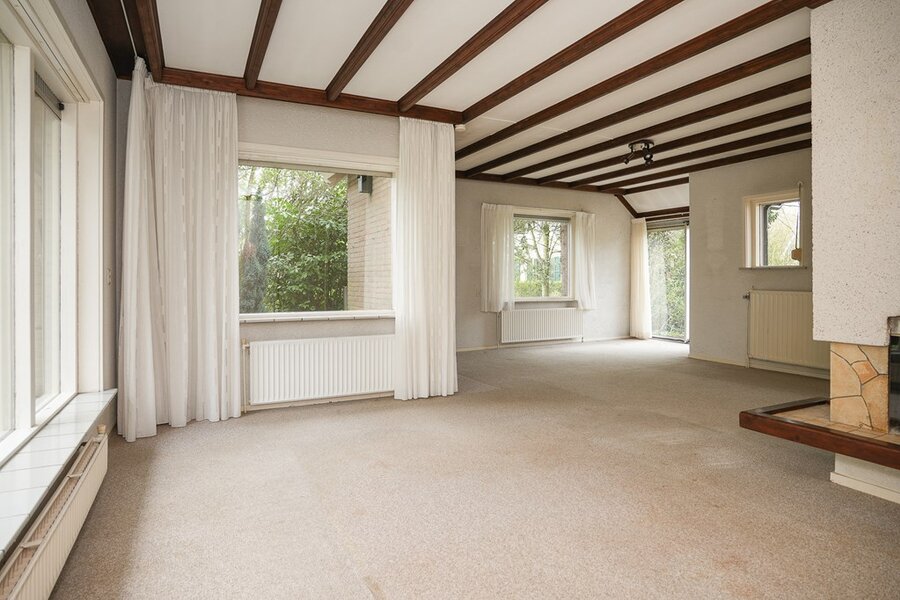 De woning uit 1965, heeft 147 m² woonoppervlak en vraagt om een serieuze renovatie. Voor de juiste koper is dat geen bezwaar — het is de reden om te komen kijken. De woning biedt drie slaapkamers op de begane grond, een woonkamer van 58 m², een inpandige garage, overkappingen en een ruime eerste verdieping. Wil je op één niveau wonen, dan kan dat. Maar met de verdieping als extra ruimte voor gezinnen, is hier voor ieder wat wils.