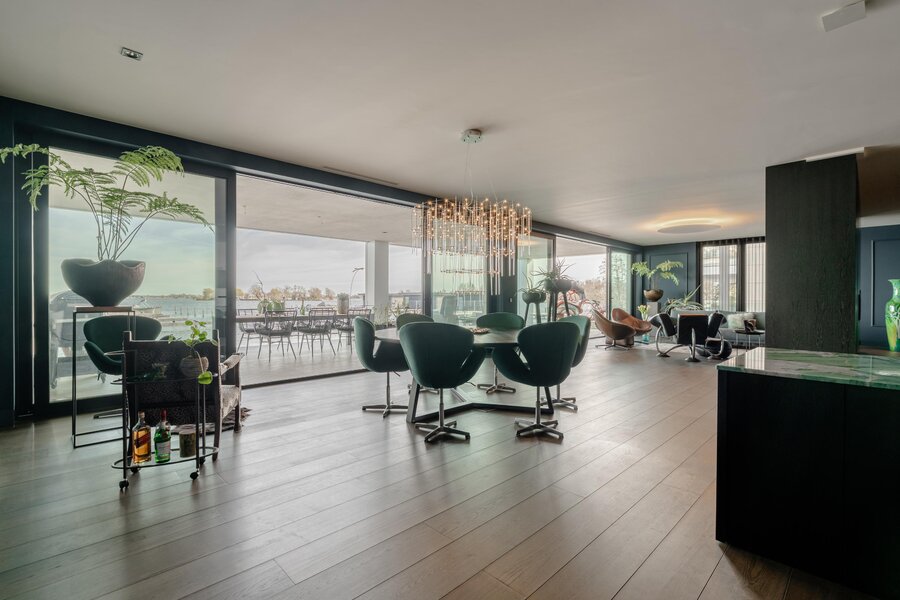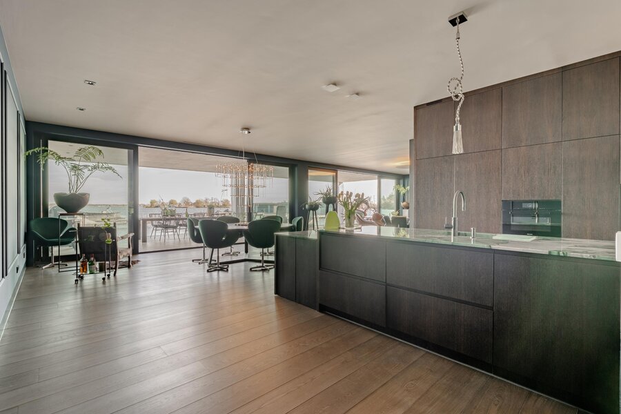 Located on the Veendijk in the highly sought-after Loosdrecht area, this exceptionally luxurious apartment with spacious terraxe that offers panoramic views over the waters of the Loosdrecht Lakes. Veendijk 21 B is part of the exclusive West End Residence (2020) and combines tranquillity, comfort and high-end finishes with a unique location by the marina.