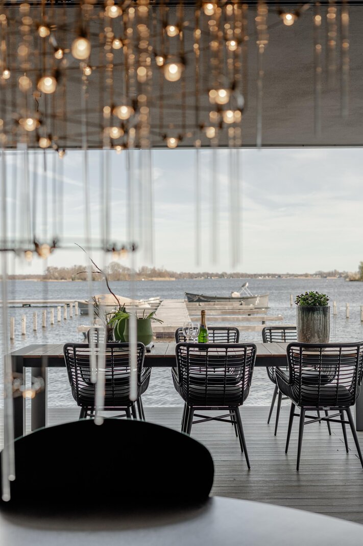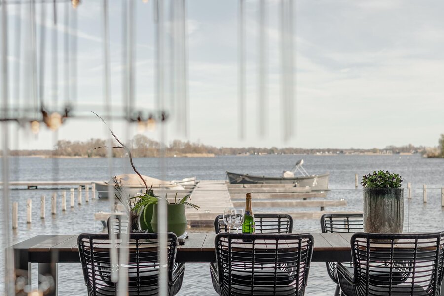 Het terras vormt een ideale plek om te ontspannen, te dineren of simpelweg te genieten van het uitzicht over het water.