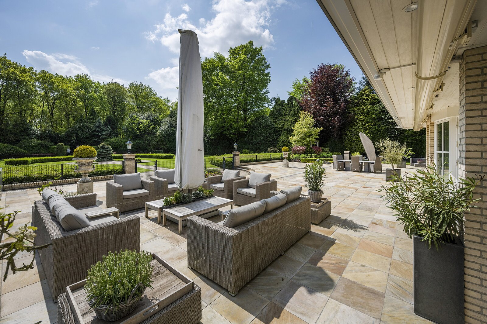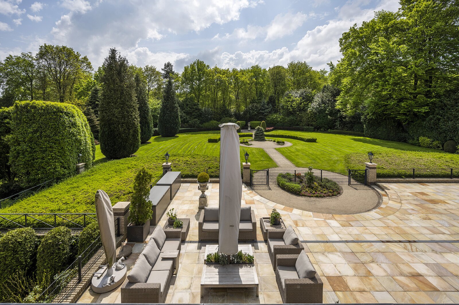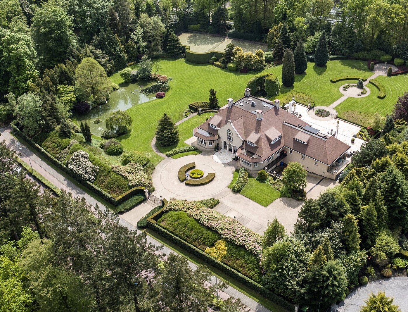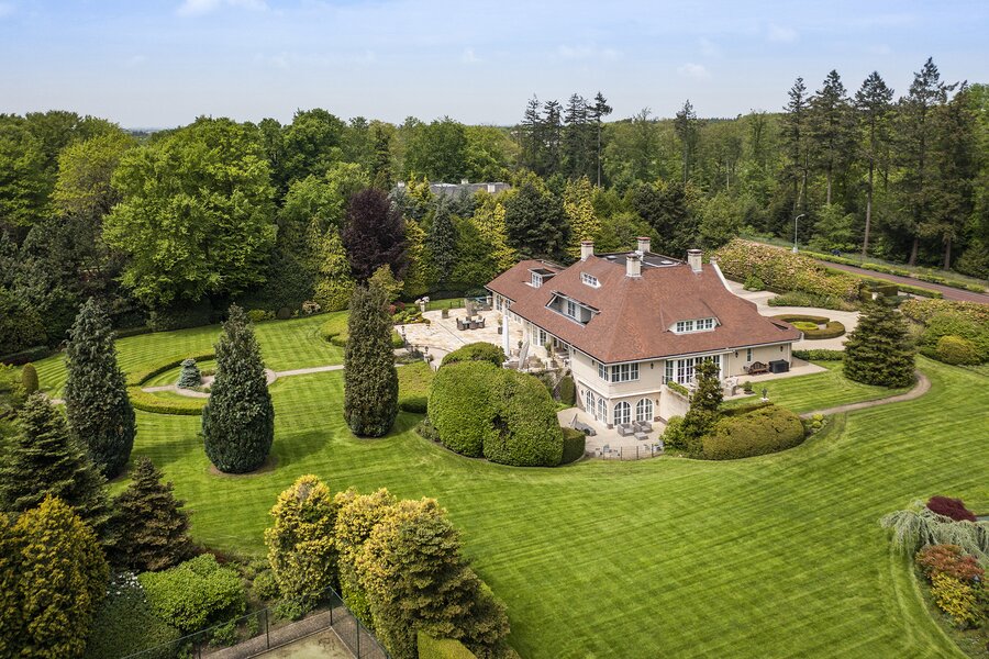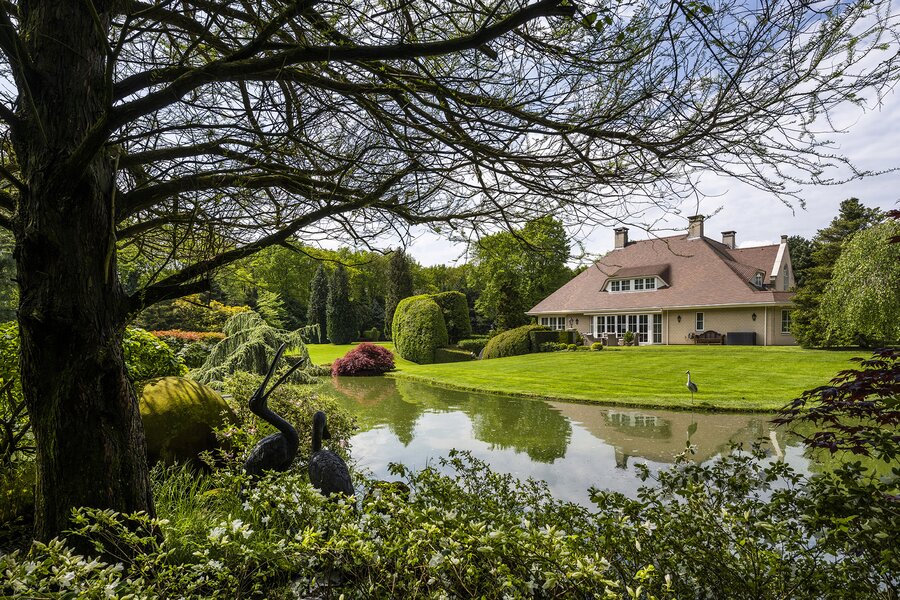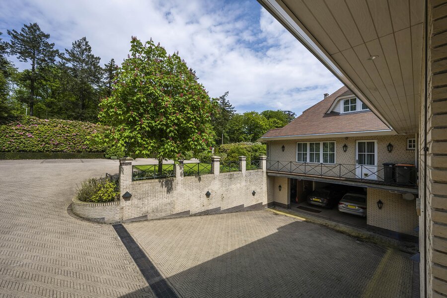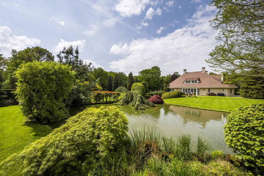 Dat uw villa midden op een meer dan 10.000 vierkante meter groot perceel staat en dat de buren ook niet op een postzegel wonen, draagt daar uiteraard aan bij. Sluit uw op afstand bedienbare toegangshek en u sluit de wereld buiten. Op ‘eigen erf’ vindt u vervolgens alles wat het leven aangenaam maakt, in aanvulling op uw buurtwensen. Tennisbaan? Check. Riante parkeergelegenheid – indoor én outdoor – voor uw collectie bolides? Check. Een lift? Check, dus daarmee is ook de levensloopbestendigheid geregeld. Binnenzwembad? Is er. Knoeperd van een buitenvijver? Vanzelfsprekend en mét koikarpers. Een inpandig maar wel volstrekt zelfstandig gastenverblijf? Maar natuurlijk. Wijnkelder? Bien sûr. Een alarminstallatie waar Fort Knox zich niet voor hoeft te schamen? Hoort erbij, op dit niveau. Want we hebben het hier over een villa in de buitencategorie: gebouwd in 2000/2001, met dik 1.000 – ja, duizend – vierkante meter woonoppervlak, verdeeld over vier etages, waarvan drie bovengronds plus een compleet geoutilleerd souterrain voor uw gasten of au-pair (met zelfs een eigen terras, dus die gasten krijgt u nooit meer weg; zeg niet dat we u niet gewaarschuwd hebben). De afwerking is tijdloos en van topkwaliteit, van de natuursteen vloeren op de begane grond tot de keramische leien op de zacht glooiende daken. Onder de brede overstek stroomt daglicht binnen door talloze roede-verdeelde ramen en openslaande deuren. En rondom, in de Engelse landschapsstijl aangelegde tuin, ziet u enkel 50 tinten groen.