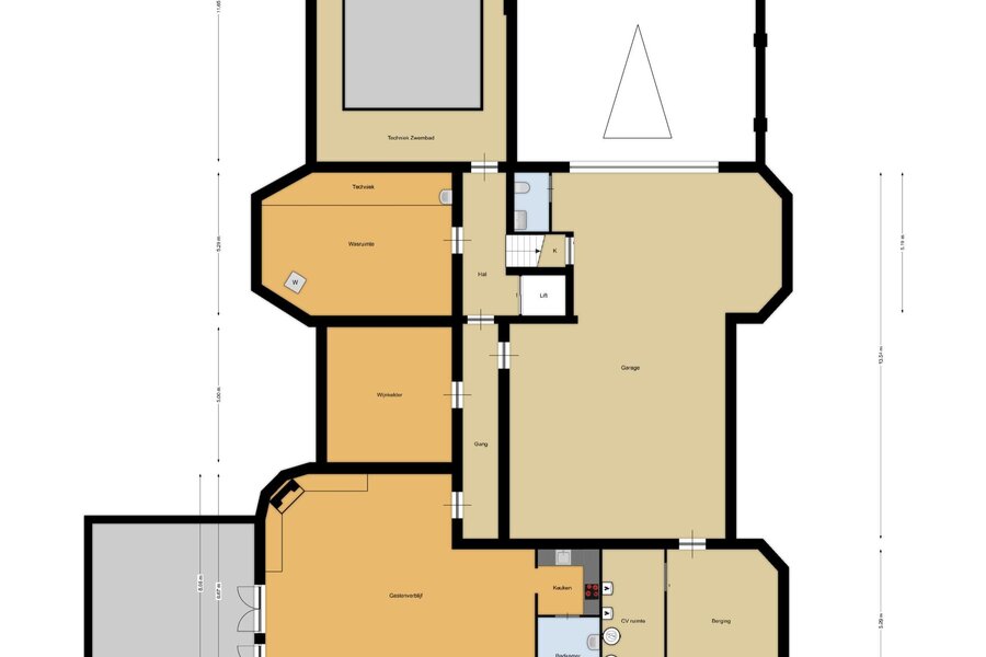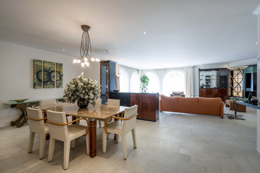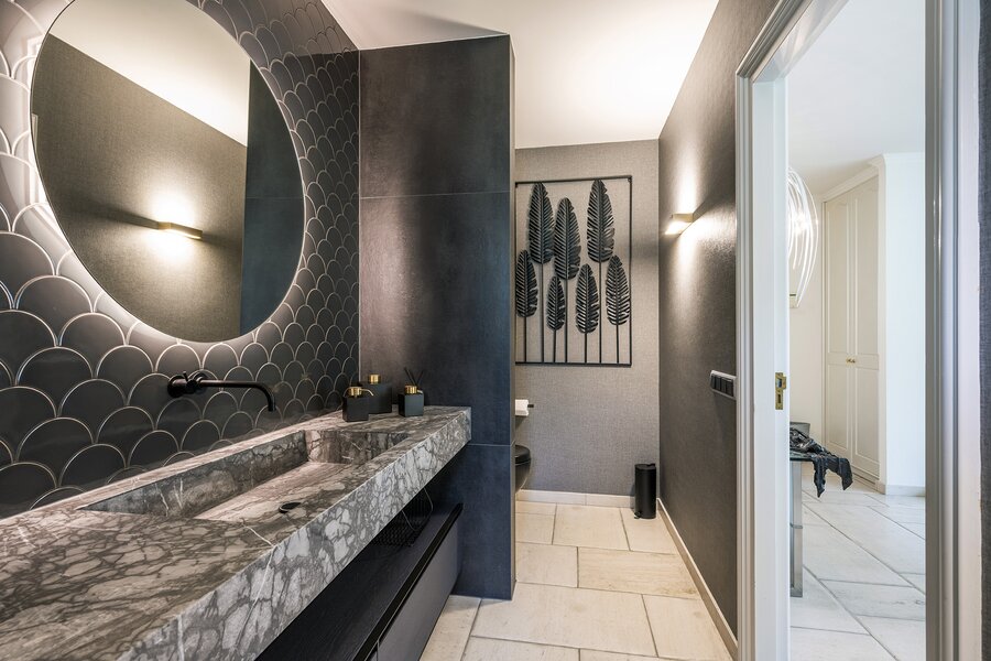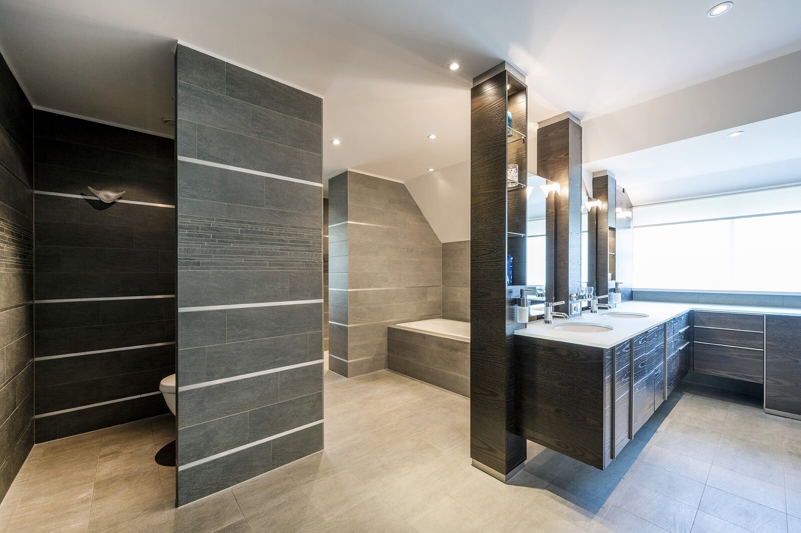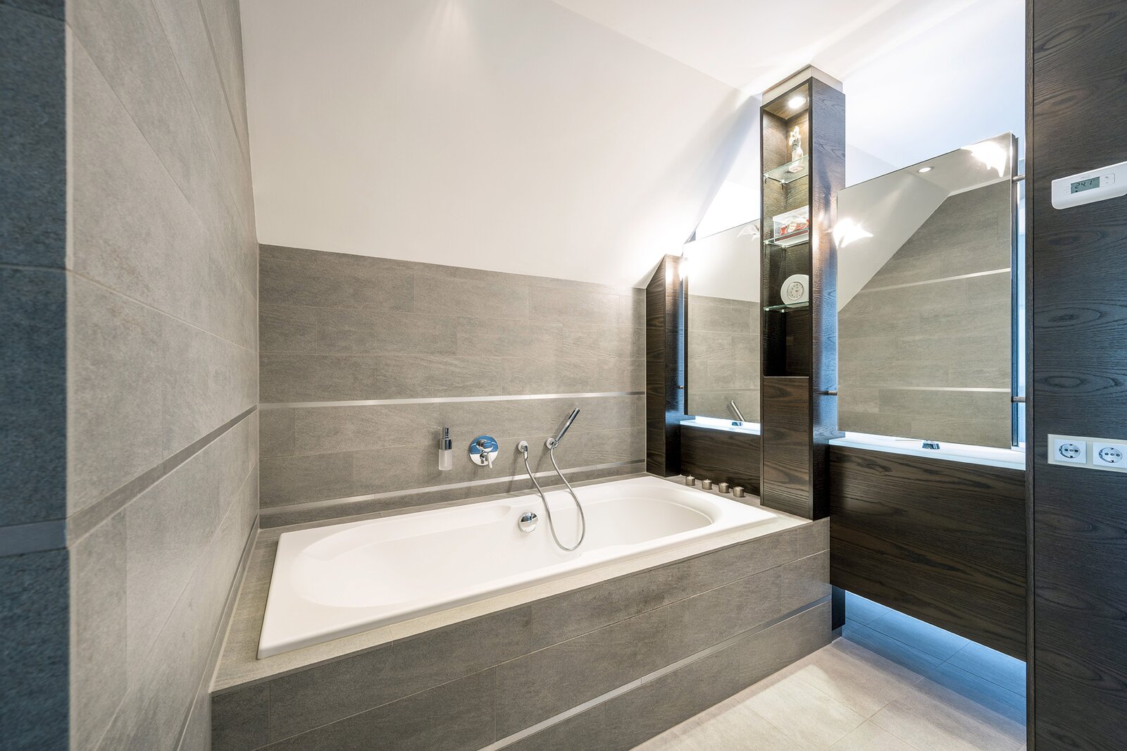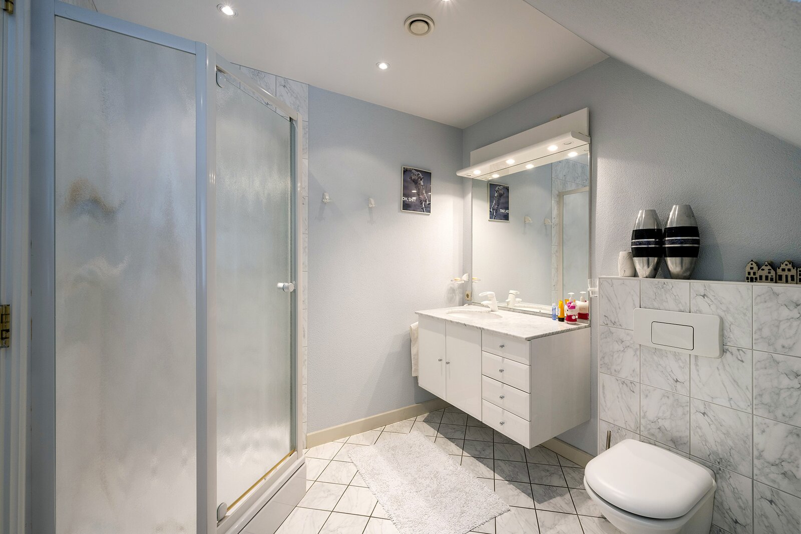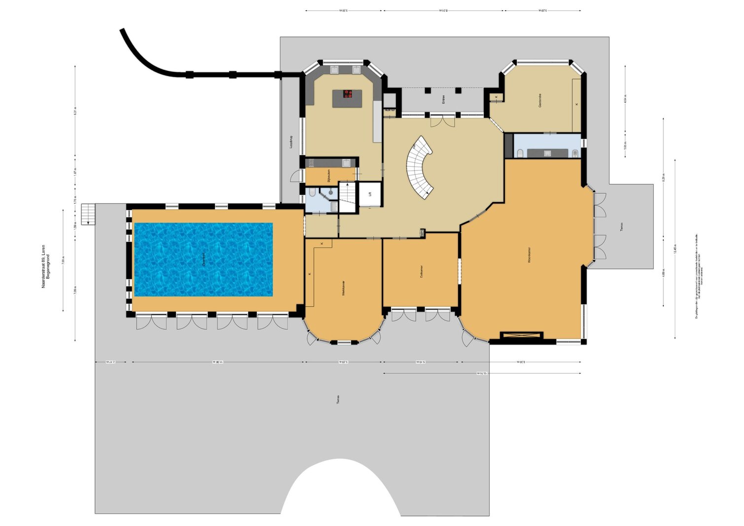 Dat uw villa midden op een meer dan 10.000 vierkante meter groot perceel staat en dat de buren ook niet op een postzegel wonen, draagt daar uiteraard aan bij. Sluit uw op afstand bedienbare toegangshek en u sluit de wereld buiten. Op ‘eigen erf’ vindt u vervolgens alles wat het leven aangenaam maakt, in aanvulling op uw buurtwensen. Tennisbaan? Check. Riante parkeergelegenheid – indoor én outdoor – voor uw collectie bolides? Check. Een lift? Check, dus daarmee is ook de levensloopbestendigheid geregeld. Binnenzwembad? Is er. Knoeperd van een buitenvijver? Vanzelfsprekend en mét koikarpers. Een inpandig maar wel volstrekt zelfstandig gastenverblijf? Maar natuurlijk. Wijnkelder? Bien sûr. Een alarminstallatie waar Fort Knox zich niet voor hoeft te schamen? Hoort erbij, op dit niveau. Want we hebben het hier over een villa in de buitencategorie: gebouwd in 2000/2001, met dik 1.000 – ja, duizend – vierkante meter woonoppervlak, verdeeld over vier etages, waarvan drie bovengronds plus een compleet geoutilleerd souterrain voor uw gasten of au-pair (met zelfs een eigen terras, dus die gasten krijgt u nooit meer weg; zeg niet dat we u niet gewaarschuwd hebben). De afwerking is tijdloos en van topkwaliteit, van de natuursteen vloeren op de begane grond tot de keramische leien op de zacht glooiende daken. Onder de brede overstek stroomt daglicht binnen door talloze roede-verdeelde ramen en openslaande deuren. En rondom, in de Engelse landschapsstijl aangelegde tuin, ziet u enkel 50 tinten groen.