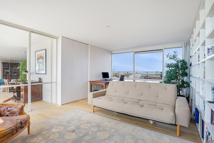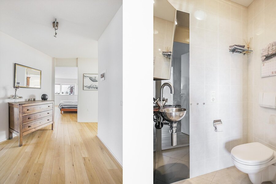 Ruime hal met toegang tot een slaapkamer, een toiletruimte met douche en wastafel voor de gasten en de masterbedroom met badkamer en inloopkast. Door de glazen deur komt u in de 102m2 grote living met keuken. De keuken is voorzien van inbouwapparatuur en heeft aangrenzend een extra inpandige balkon/loggia ook te gebruiken als werkkamer. De glazen pui tot aan het plafond is indrukwekkend met een lengte van 19 meter biedt een panoramisch uitzicht over de Westerschelde. Aan het uiteinde is een ruime werkkamer annex logeerkamer met uitzicht op zowel de zee als de stad. Als laatste is er nog een knusse serre waar u zelfs in de winter, met open ramen, kunt genieten van de zon en de zee.