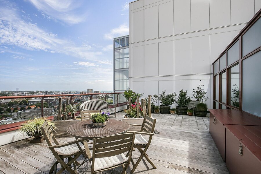 Dit penthouse met o.a. een riante living, 3 slaapkamers en 2 badkamers, biedt totaal 165 m2 aan woonruimte i.c.m. ruim 130 m2 aan buitenterrassen. Zelden heeft een appartement zoveel buitenruimte.